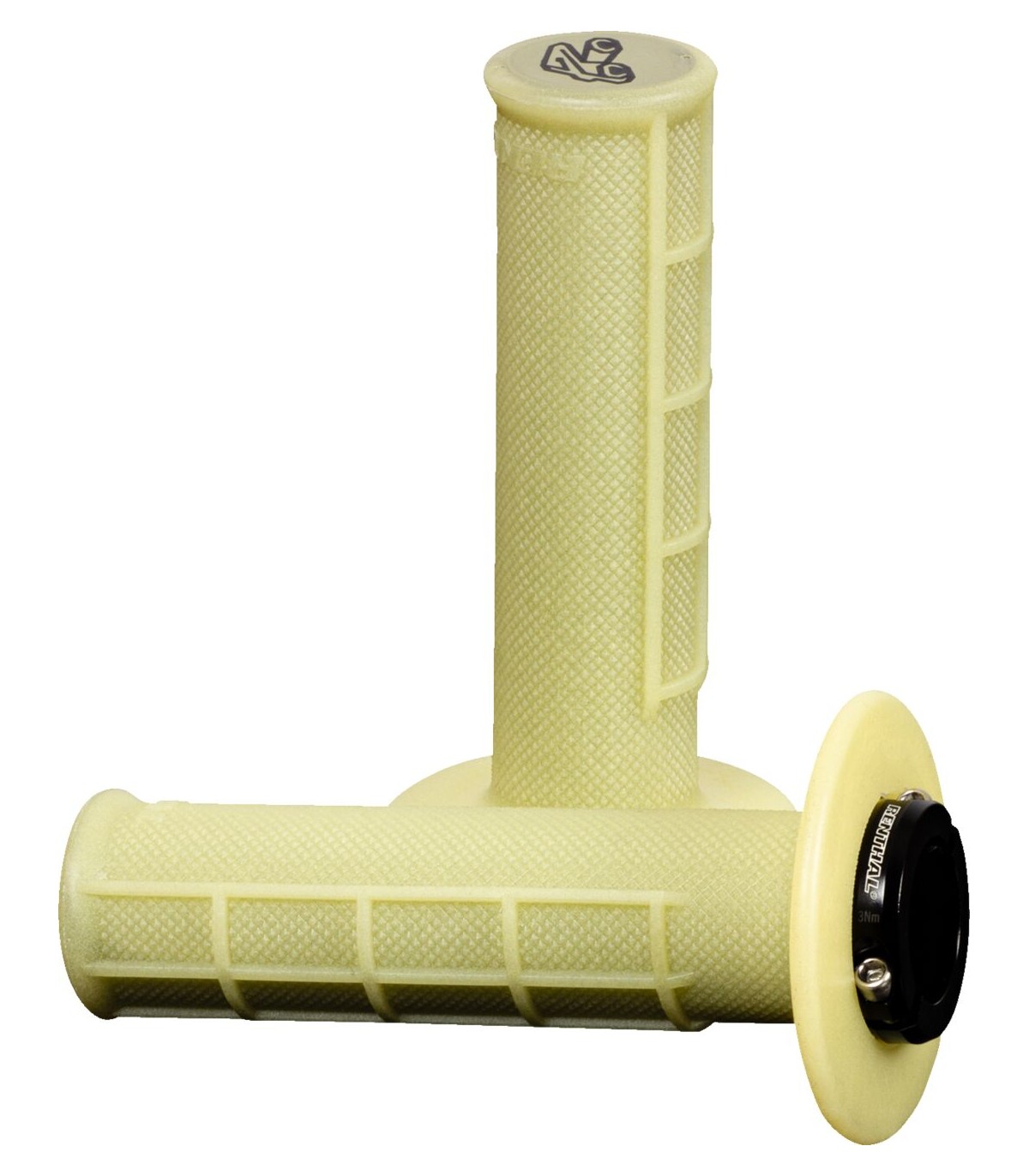 MX R-Works Lock-On GripsLock-on grip is fit for installation on any aftermarket handlebar without the need for modification while retaining full clamping forceTwin split collar design means you are able to slide the clutch side grip over any knurled MX handlebars without any sanding or modification, ensuring the clamp is permanently bonded to the gripEach pair of grips comes with a set of 6 throttle cams; cams cleanly snap on with a simple press fitment design and provide smooth throttle actionTuff-End Tech provides 4 mm thick solid plastic end caps with a premium and vibrant Renthal ‘R’ logo to minimize damage that can incur during a crash or tip over, allowing you to finish your ride or race without failure