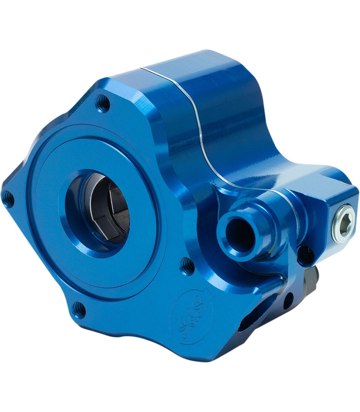 Oil PumpPumps are made from precision-machined billet aluminumIndependent scavenge sections for flywheel cavity and cam chestDebris screen in both scavenge pickupsMagnet in the cam chest helps prevent debris from entering the pumpIncreased flow capacity on both feed and scavenge sideAdjustable pressure relief valve can be adjusted with unit in engineMade in the USAFeatures 20% flow increase on supply side and 52% flow increase on scavenge.
