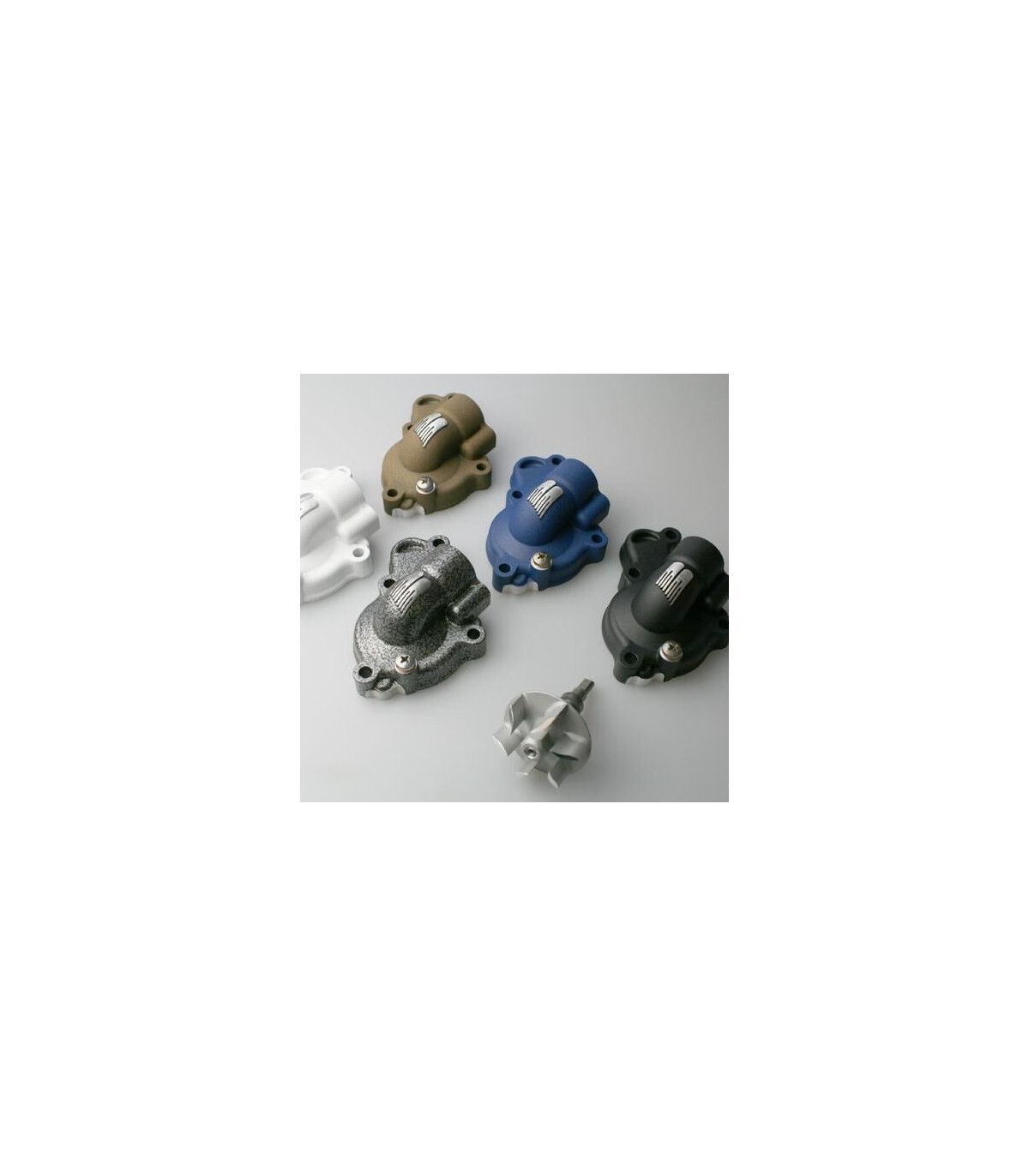 Supercooler Water Pump Cover & Impeller KitPatented Nautilus style cast aluminum impellerCover and Impeller Kit Increase coolant flow at all rpm rangesReduces cavitation and hydraulic frictionSeamless Hydrodynamic designHigh capacity inletsAvailable in Silver, black, magnesium, orange, red and blue-colored powder-coat finish