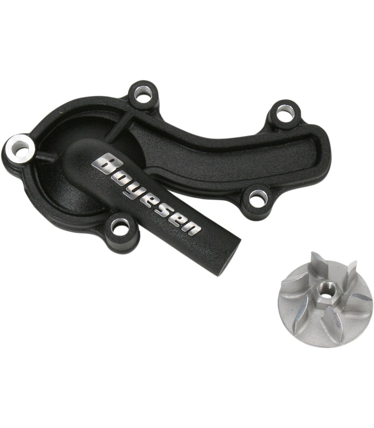Supercooler Water Pump Cover and Impeller KitAn aluminum investment-cast water pump cover and impeller combo; specifically designed to enhance the performance of your engines cooling systemThis high-flow, hydrodynamic water pump kit has been tested and designed to flow more coolantBy increasing the flow at all rpm ranges, the engine will run cooler at a more constant temperaturePatented nautilus style impeller for hydrodynamic efficiencyExtend engine life