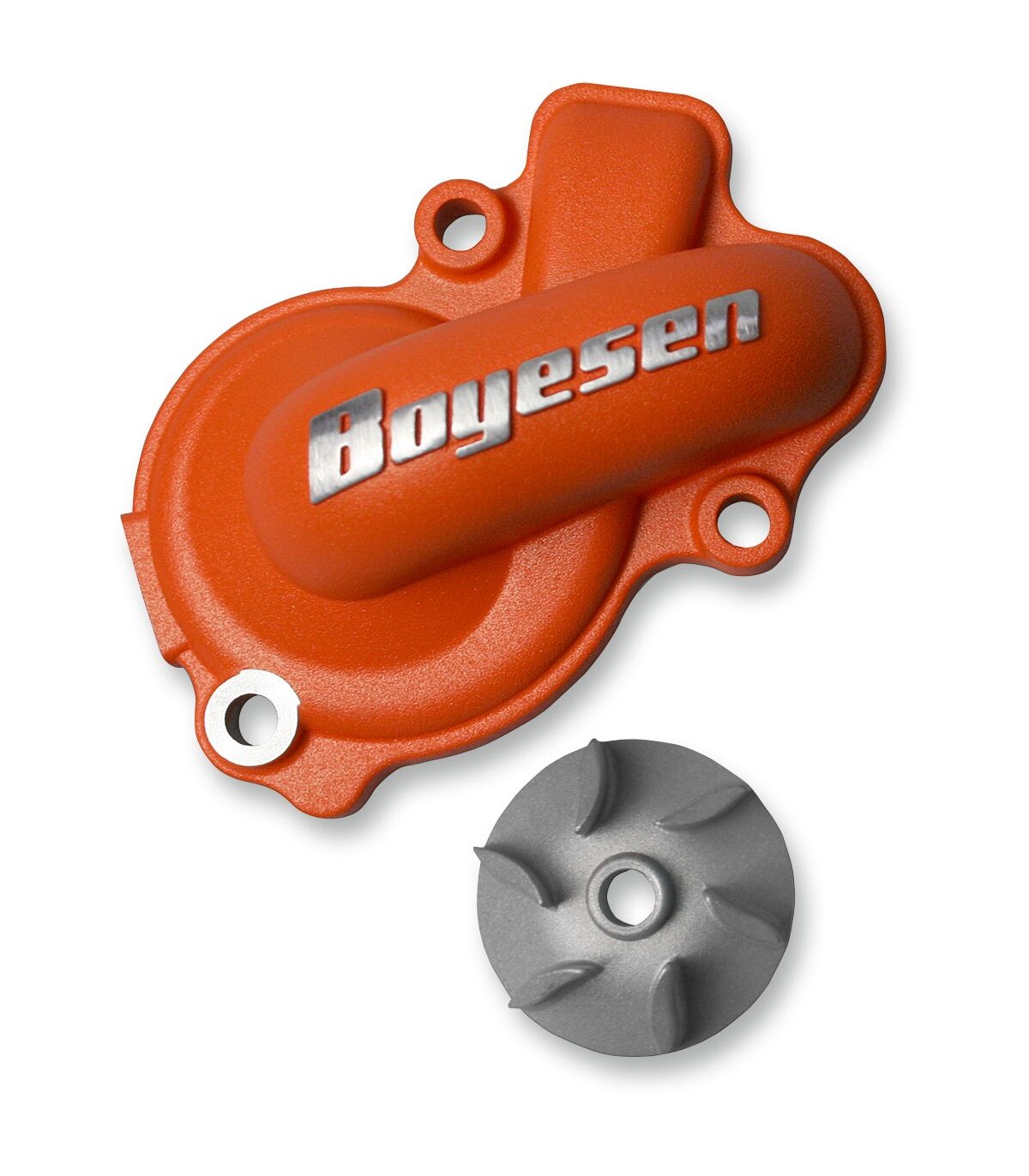Supercooler Water Pump Cover and Impeller KitAn aluminum investment-cast water pump cover and impeller combo; specifically designed to enhance the performance of your engines cooling systemThis high-flow, hydrodynamic water pump kit has been tested and designed to flow more coolantBy increasing the flow at all rpm ranges, the engine will run cooler at a more constant temperaturePatented nautilus style impeller for hydrodynamic efficiencyExtend engine life