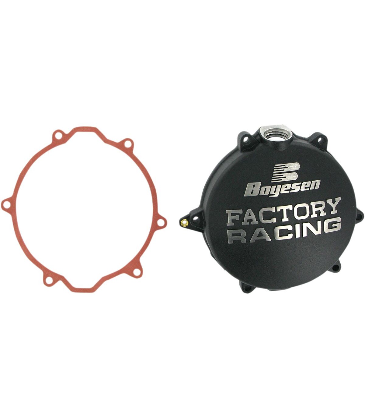 Factory Clutch CoverSet your ride apart from the rest with the ultimate look in race performanceLightweight factory clutch covers provide years of outstanding protection; guaranteed not to warpIndividually surfaced for a perfect, leak-free fitSuper-tough, powder-coated finish resists weathering and wear and tearAsbestos-free gasket is bound with nitrile for tight, leak-free sealOEM paper gaskets can be reused, or use the supplied O-ring
