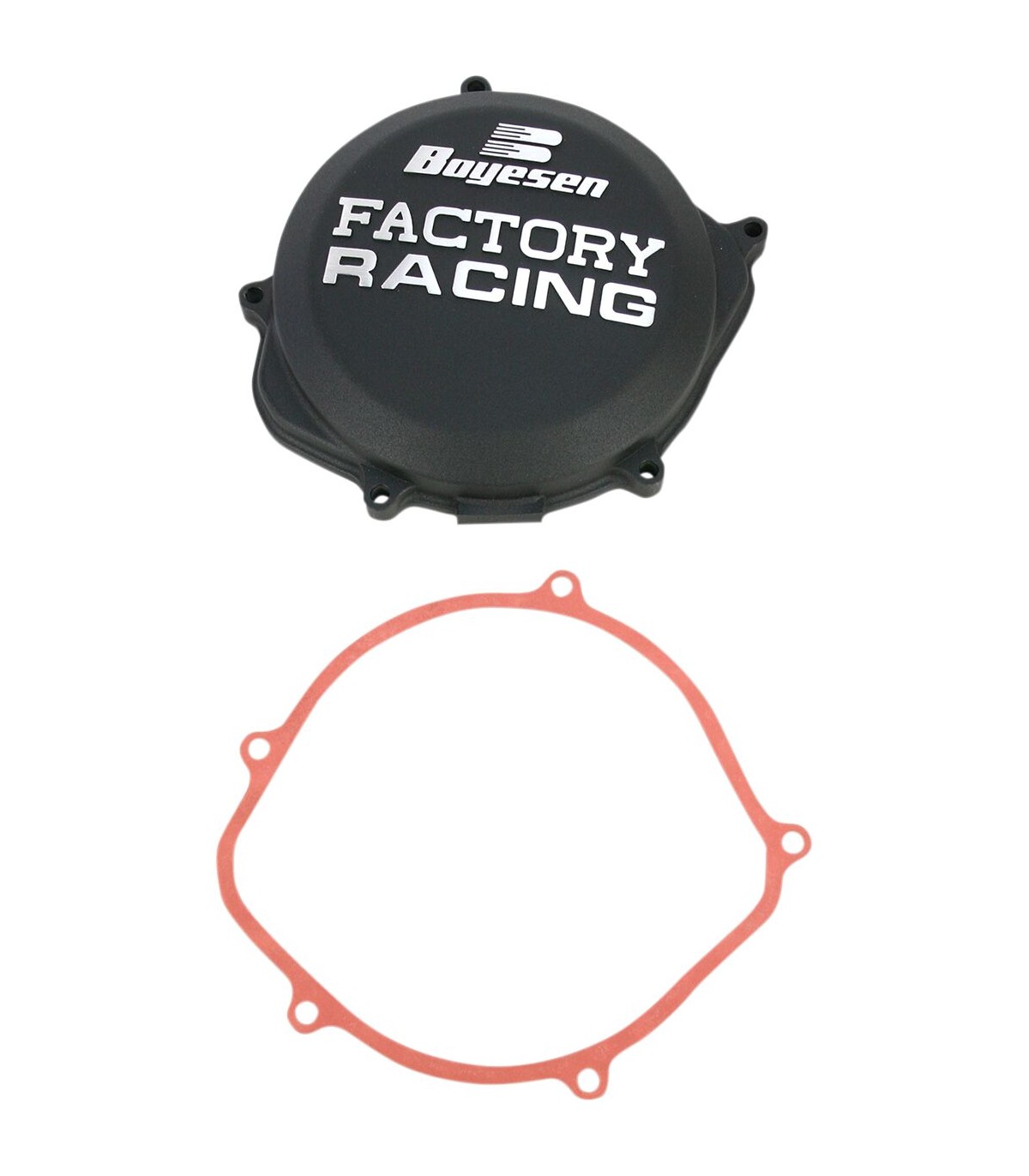 Factory Clutch CoverSet your ride apart from the rest with the ultimate look in race performanceLightweight factory clutch covers provide years of outstanding protection; guaranteed not to warpIndividually surfaced for a perfect, leak-free fitSuper-tough, powder-coated finish resists weathering and wear and tearAsbestos-free gasket is bound with nitrile for tight, leak-free sealOEM paper gaskets can be reused, or use the supplied O-ring
