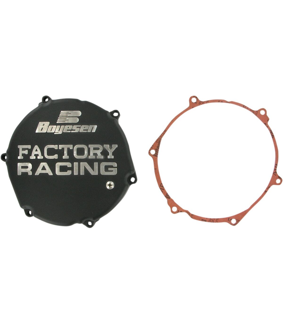 Factory Clutch CoverSet your ride apart from the rest with the ultimate look in race performanceLightweight factory clutch covers provide years of outstanding protection; guaranteed not to warpIndividually surfaced for a perfect, leak-free fitSuper-tough, powder-coated finish resists weathering and wear and tearAsbestos-free gasket is bound with nitrile for tight, leak-free sealOEM paper gaskets can be reused, or use the supplied O-ring