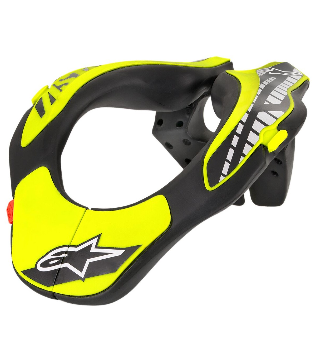 Youth Neck SupportCompact, easy-to-use design for kids ages 8-14Ergonomic design and engineered shape for ideal fitment with Alpinestars A-5 SLeft and right rigid frames are made from a polymer compound combination with the internal smooth edge made of soft-injected EVA to provide a great fit and stable positioningOverall frame construction dissipates energy loads by transmitting them across the backFlexible back connector between the left and right frames allows the neck support to follow the body's movements when ridingChin plates on the front dissipate pressure of the helmet when impactingQuick-release closure system to easily engage or disengage the neck supportCompatible with Alpinestars A-5 S; can also be worn on its own using the A-strap (included in the YNS kit)Regulation (EU) 2016/ 425 - Category 2.