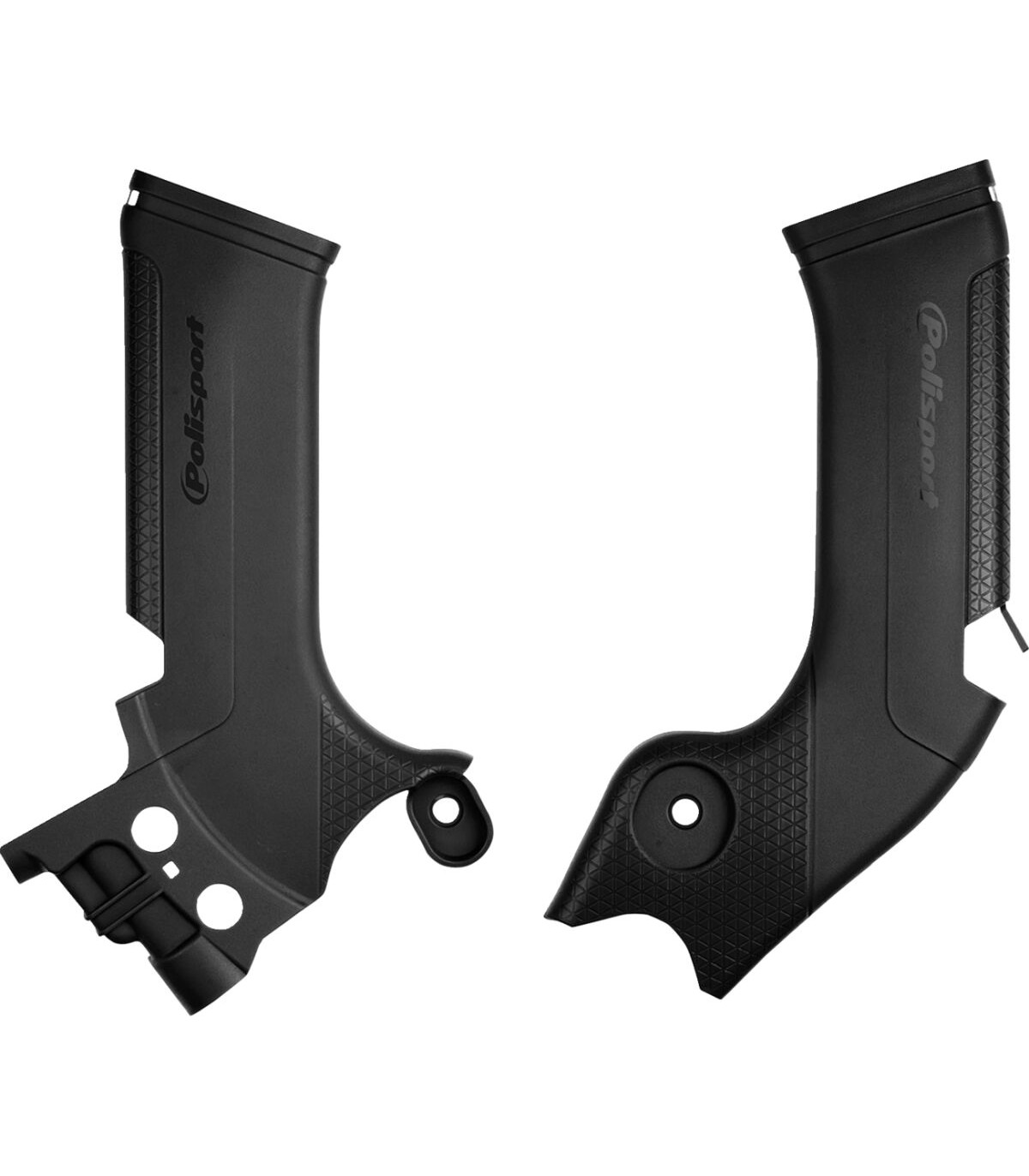 Frame GuardsProvides protection of the frame from roost, rocks and the rider's bootsGreater grip with textured finish similar to OEMAbrasion and impact resistantSlim protection do it won't interfere with rider's bootsDurable and resistantKeeps the frame looking like newQuick and easy to installPeriodic removal and cleaning advisedIncludes mounting hardware