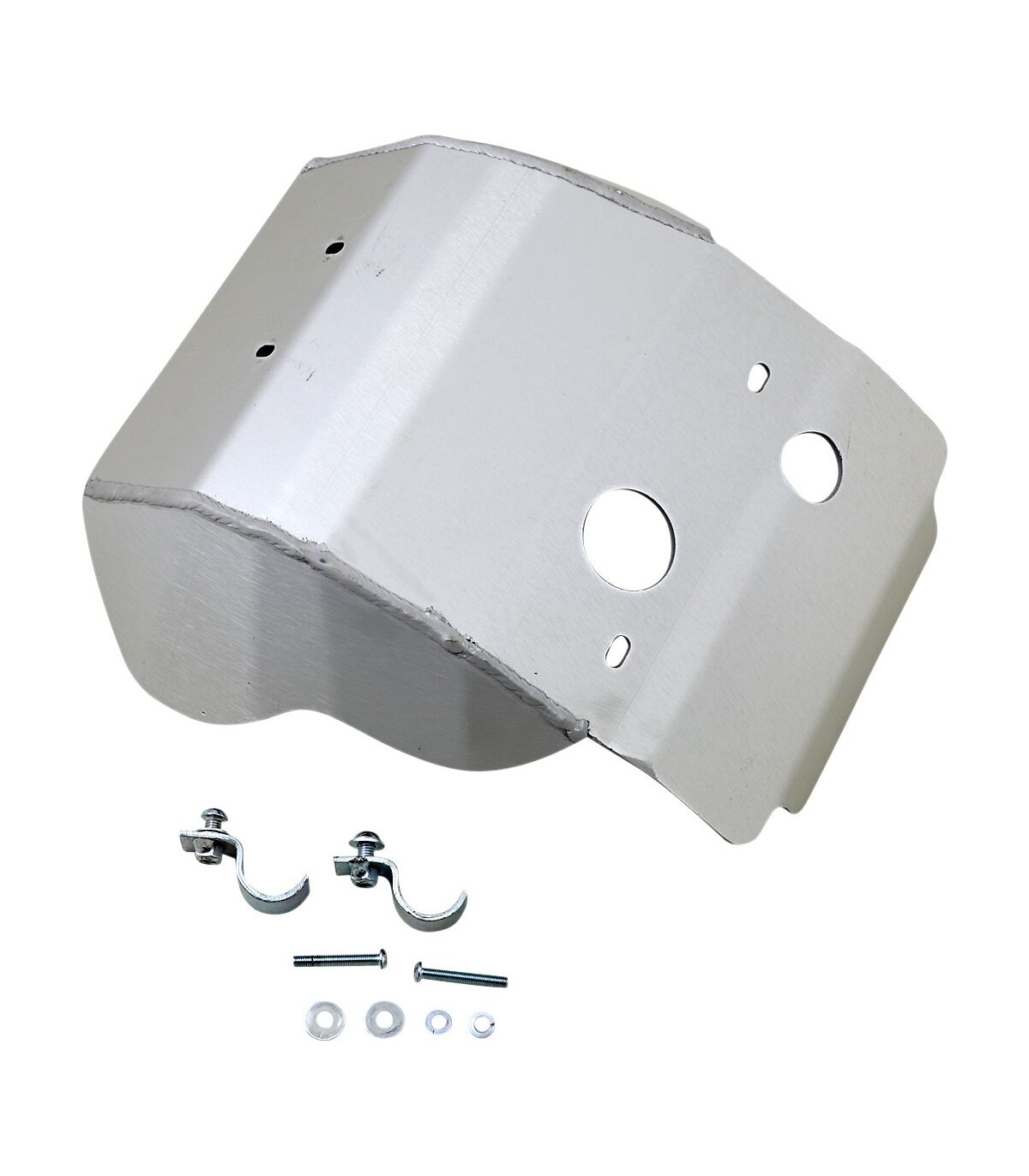 Sabot de protection en aluminiumProtègent les parties vitales du moteur et du cadre des rochers et des débrisAnodisé clair pour une protection contre la corrosion et un design séduisantSabots en aluminium 5052 H-32 de 4,76 mm (0,19 pouce)La partie inférieure souple n'est pas endommagée quand vous passez sur des troncs couchésAvec trou de vidange d'huile le cas échéantDes colliers de serrage en acier chromé traité thermiquement assurent la fixation des sabotsAvec kit de montageFabrication aux États-Unis