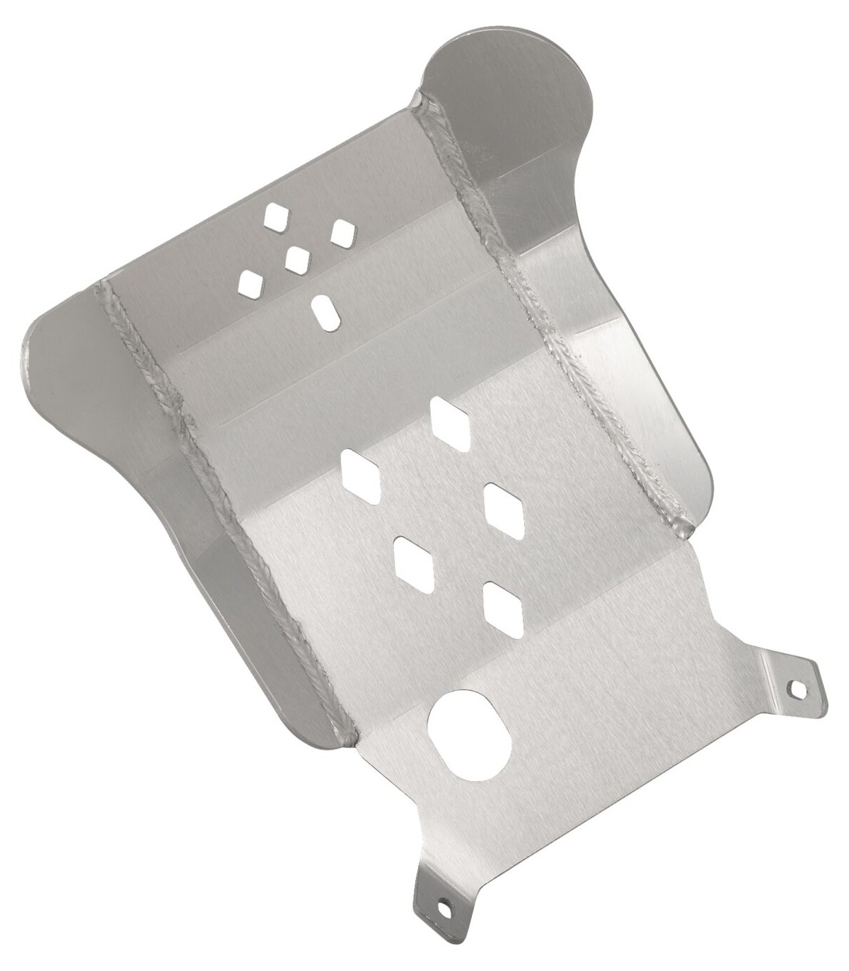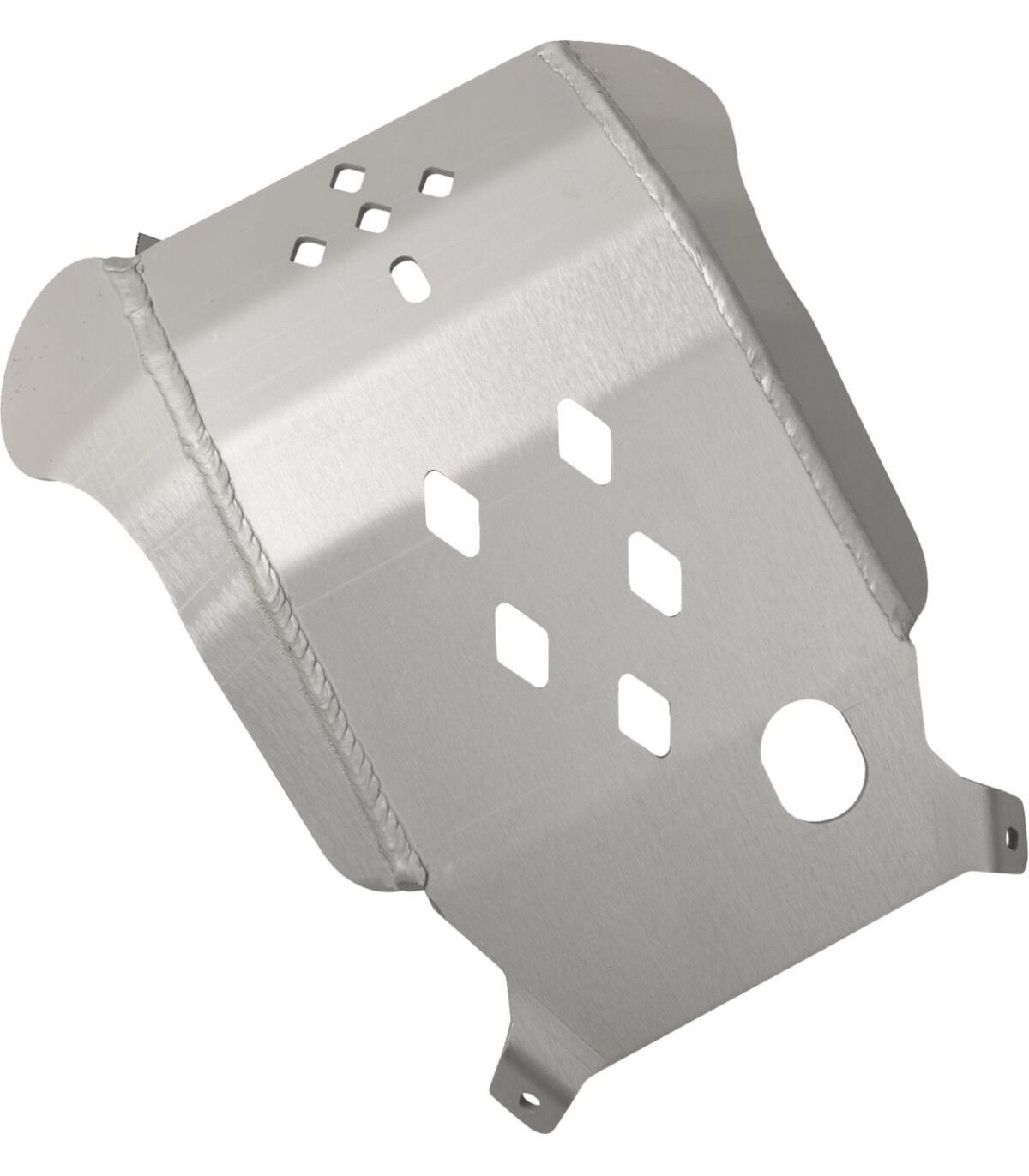 Sabot de protection en aluminiumProtègent les parties vitales du moteur et du cadre des rochers et des débrisAnodisé clair pour une protection contre la corrosion et un design séduisantSabots en aluminium 5052 H-32 de 4,76 mm (0,19 pouce)La partie inférieure souple n'est pas endommagée quand vous passez sur des troncs couchésAvec trou de vidange d'huile le cas échéantDes colliers de serrage en acier chromé traité thermiquement assurent la fixation des sabotsAvec kit de montageFabrication aux États-Unis