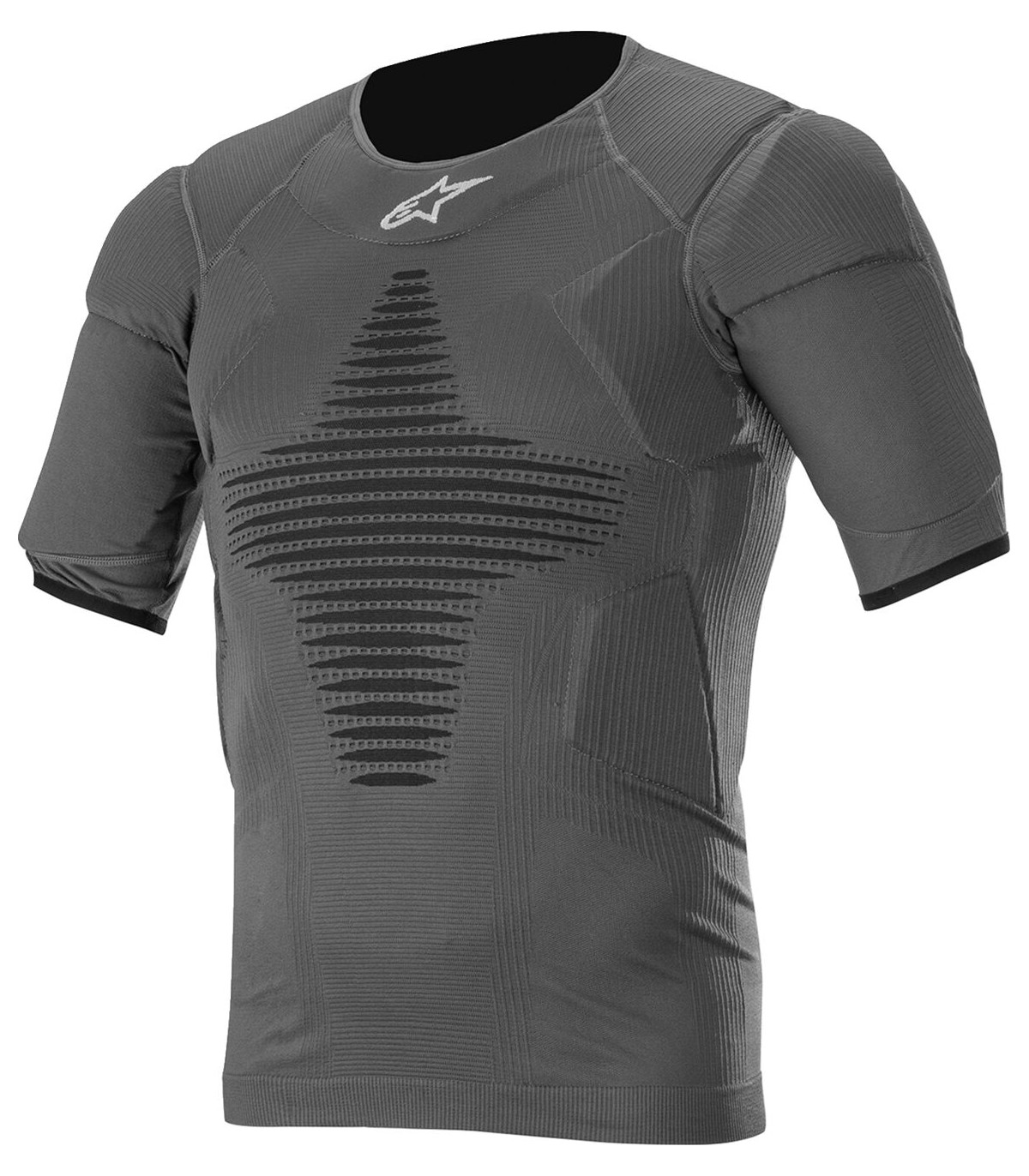 Roost Base Layer TopKnitted construction is breathable and provides a comfortable tight fit while being stretchable enough so as not to obstruct any rider movementsKnitted construction requires less stitching which also increases rider comfortStrategically placed padded zones provide additional protection against tire roostCompatible with all Alpinestars chest protectors