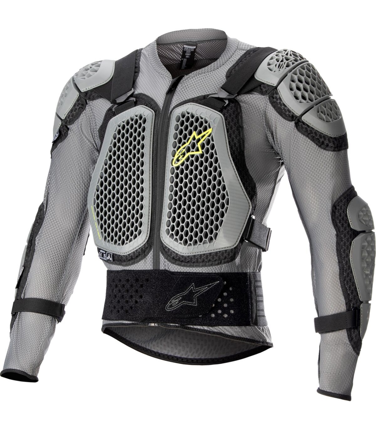 Bionic Action v2 Protection JacketFeatures Cell Technology chest protector with a perforated shell for high levels of ventilation and protectionCell Technology back protector with a flexion channel for enhanced mobilityProtectors are perforated for breathability and cooling ventilationElastic closure system features newly designed quick, easy-to-use buckles that fit a broad range of rider body sizesPadded chassis for comfort and close-to-body fitShoulder straps feature a specifically designed rotating buckle where the strap meets the chest protector to facilitate enhanced articulation of the armsBionic Neck Support compatibility with the BNS A or X-Strap Systems available as an upgradeBack protector EN 1621-2:2014 Level 1.Chest protector EN 1621-3:2018 Level 1.Elbow & shoulder protectors EN 1621-1:2012 Level 1.