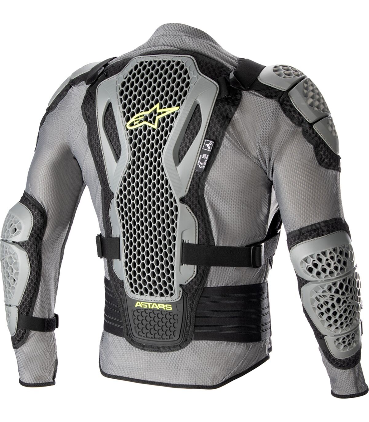 Bionic Action v2 Protection JacketFeatures Cell Technology chest protector with a perforated shell for high levels of ventilation and protectionCell Technology back protector with a flexion channel for enhanced mobilityProtectors are perforated for breathability and cooling ventilationElastic closure system features newly designed quick, easy-to-use buckles that fit a broad range of rider body sizesPadded chassis for comfort and close-to-body fitShoulder straps feature a specifically designed rotating buckle where the strap meets the chest protector to facilitate enhanced articulation of the armsBionic Neck Support compatibility with the BNS A or X-Strap Systems available as an upgradeBack protector EN 1621-2:2014 Level 1.Chest protector EN 1621-3:2018 Level 1.Elbow & shoulder protectors EN 1621-1:2012 Level 1.