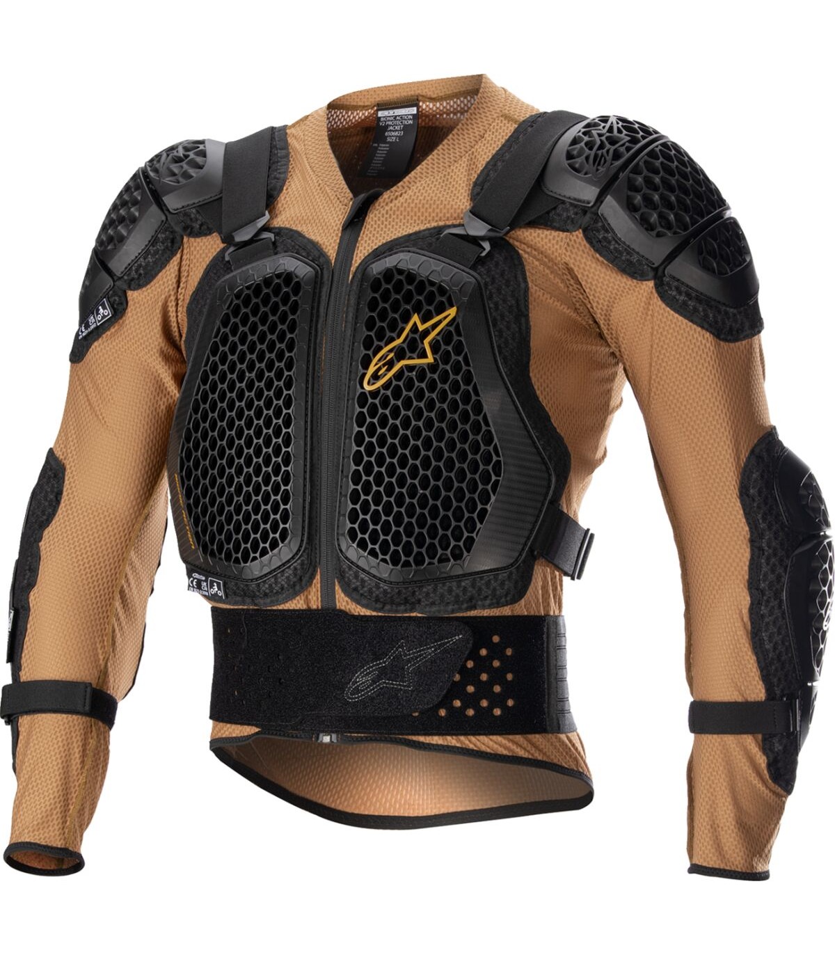 Bionic Action v2 Protection JacketFeatures Cell Technology chest protector with a perforated shell for high levels of ventilation and protectionCell Technology back protector with a flexion channel for enhanced mobilityProtectors are perforated for breathability and cooling ventilationElastic closure system features newly designed quick, easy-to-use buckles that fit a broad range of rider body sizesPadded chassis for comfort and close-to-body fitShoulder straps feature a specifically designed rotating buckle where the strap meets the chest protector to facilitate enhanced articulation of the armsBionic Neck Support compatibility with the BNS A or X-Strap Systems available as an upgradeBack protector EN 1621-2:2014 Level 1.Chest protector EN 1621-3:2018 Level 1.Elbow & shoulder protectors EN 1621-1:2012 Level 1.