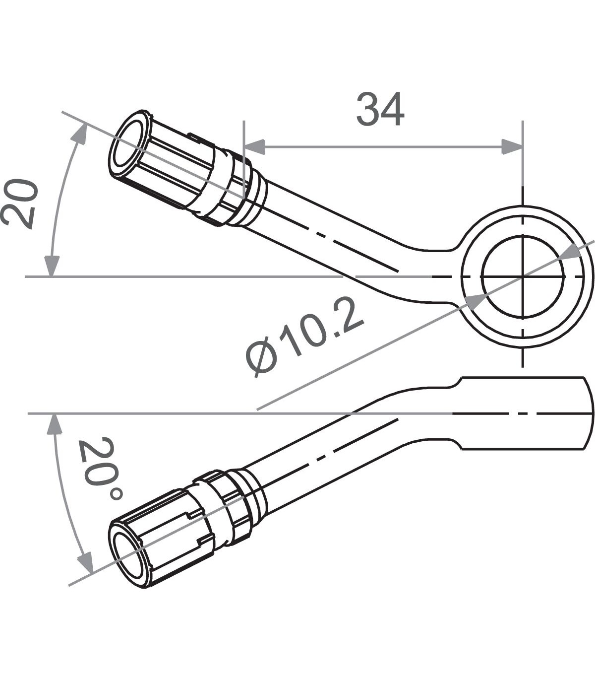 Raccord banjo VarioflexMontage en atelier ou soi-même, les connecteurs et les lignes sont disponibles séparémentTube intérieur en téflon DuPont, toile en acier à quatre filsConforme à la norme fédérale internationale de sécurité des véhicules automobiles FMVSS 106Banjo M10, Length 34mm, 20 degree bend vertical and horizontal