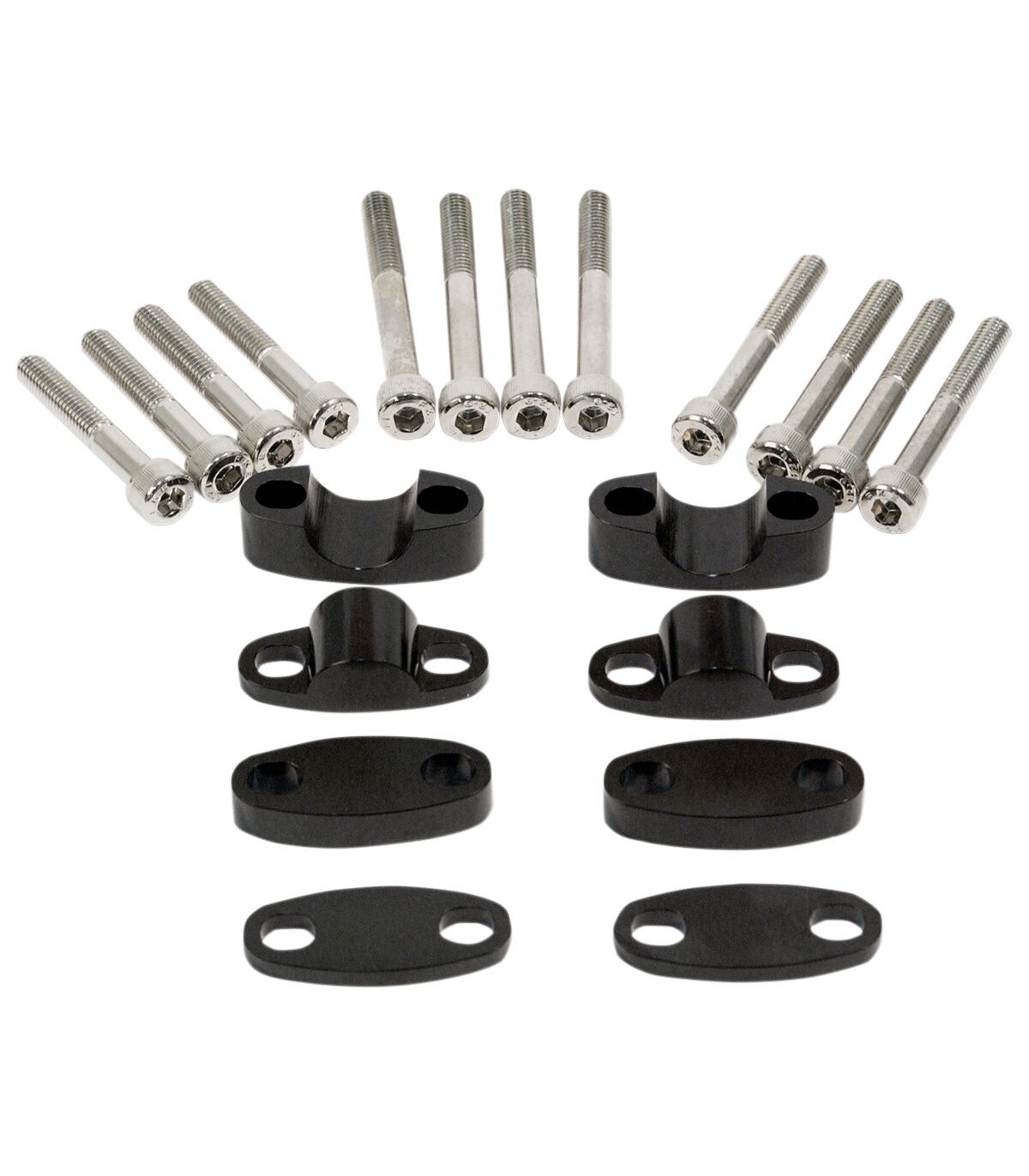 Kit de pontets en aluminiumPermet au pilote de modifier facilement la hauteur du guidonTaille de guidon pouvant être augmentée par paliers de 5 mm avec hauteur surélevée de 25 mm maximum