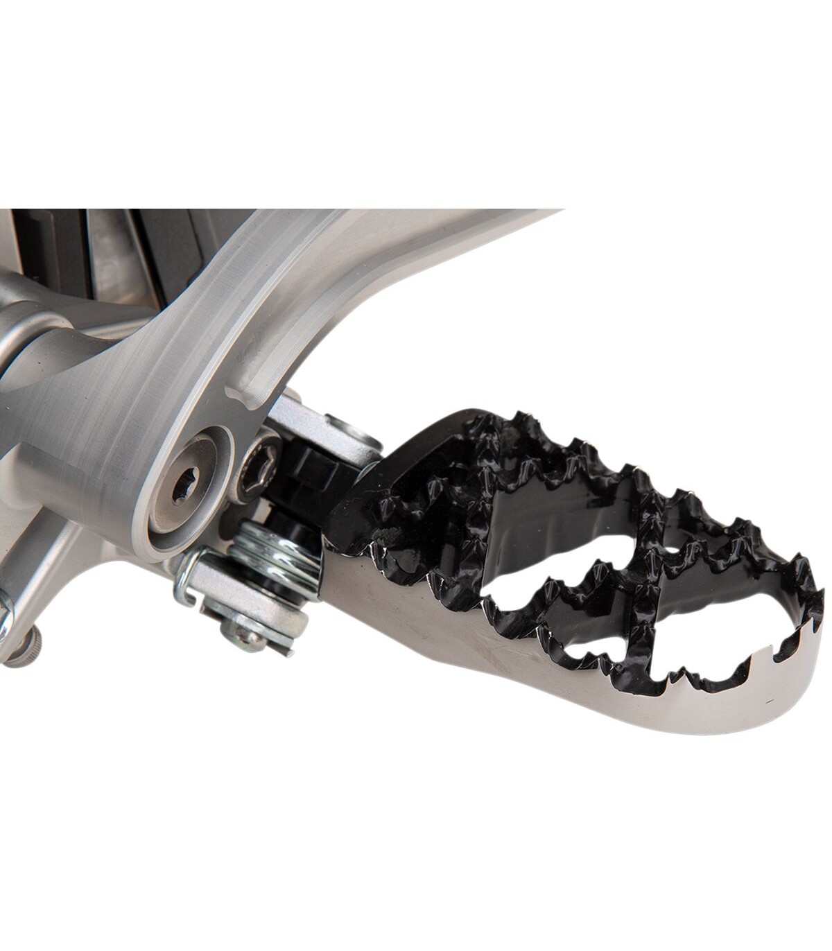 Repose-pieds HybridChaque repose-pied est en acier inoxydable 17-4 coulé, traité thermiquement, trempé, mis en solution et durci par vieillissement pour une résistance supérieureLarge de 57 mm et longue de 90 mm, cette plate-forme légèrement convexe permet de mieux positionner la botte et améliore l'adhérence quand vous vous penchez vers l'avant ou l'arrièreLes rangées de dents se croisant garantissent une adhérence optimale sans donner la sensation d’être « coincé ».Fabrication aux États-Unis