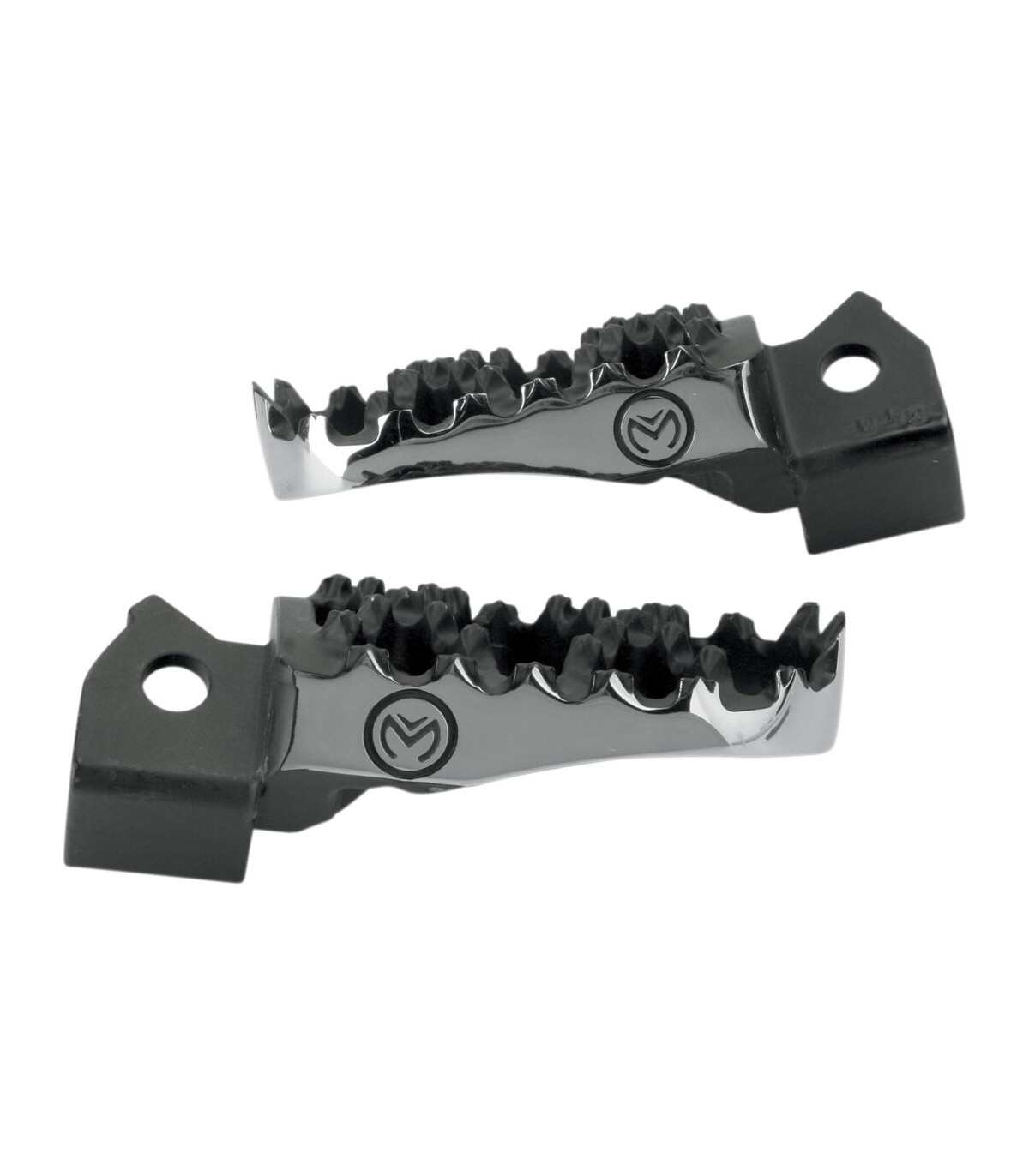 Repose-pieds HybridChaque repose-pied est en acier inoxydable 17-4 coulé, traité thermiquement, trempé, mis en solution et durci par vieillissement pour une résistance supérieureLarge de 57 mm et longue de 90 mm, cette plate-forme légèrement convexe permet de mieux positionner la botte et améliore l'adhérence quand vous vous penchez vers l'avant ou l'arrièreLes rangées de dents se croisant garantissent une adhérence optimale sans donner la sensation d’être « coincé ».Fabrication aux États-UnisTous les modèles 650/1200 nécessitent le kit d'entretoises (1620-1124)