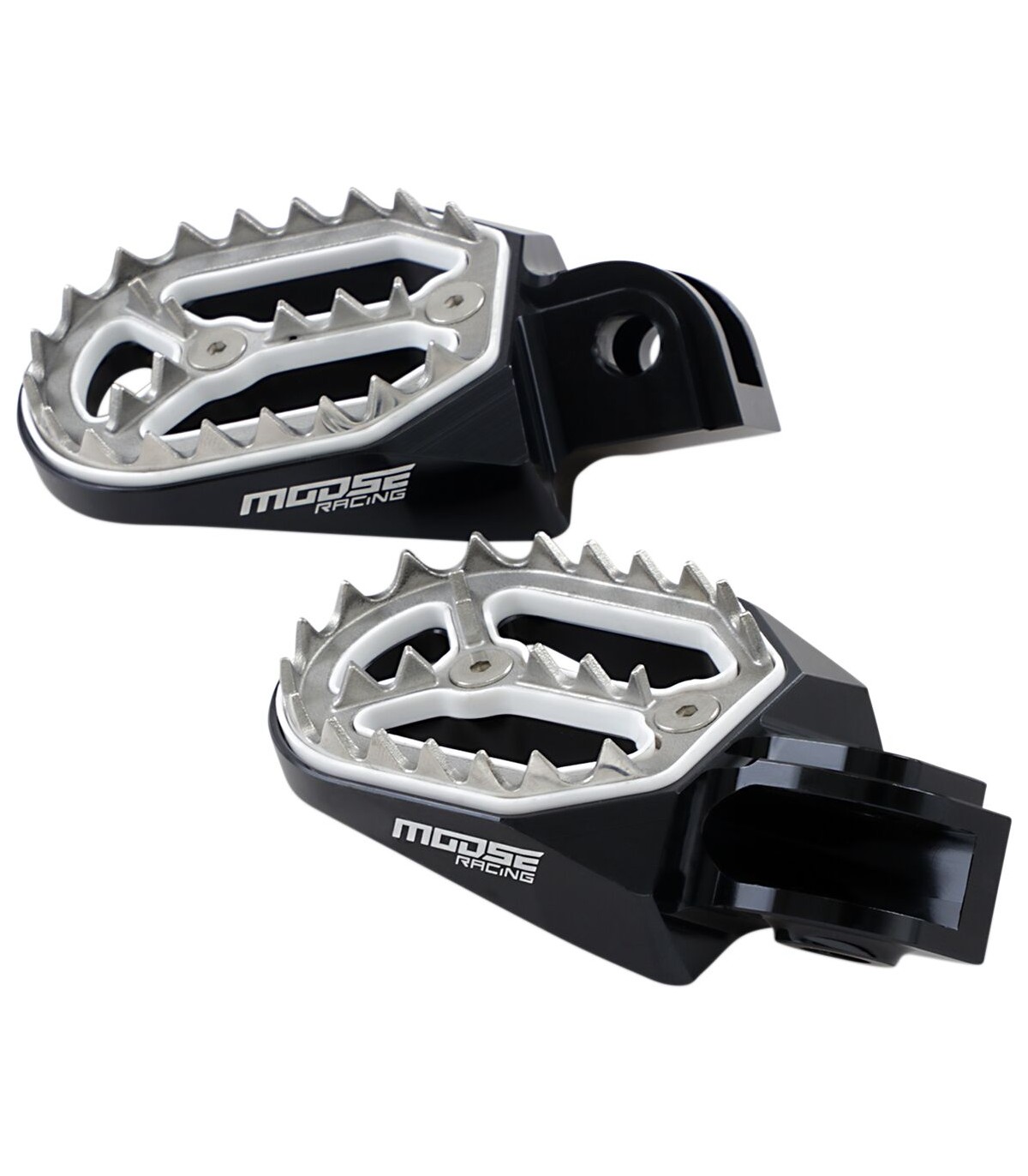Repose-pieds QualifierRepose-pied en deux parties au design légerAlliage d'aluminium usiné CNCPlateau repose-pied extrêmement large en acier inoxydable pouvant être remplacé et offrant au pilote une adhérence ultimeLe plateau repose-pied en acier inoxydable est en outre intégré à un amortisseur en caoutchouc qui amortit les chocsUtilisent les ressorts d'origine