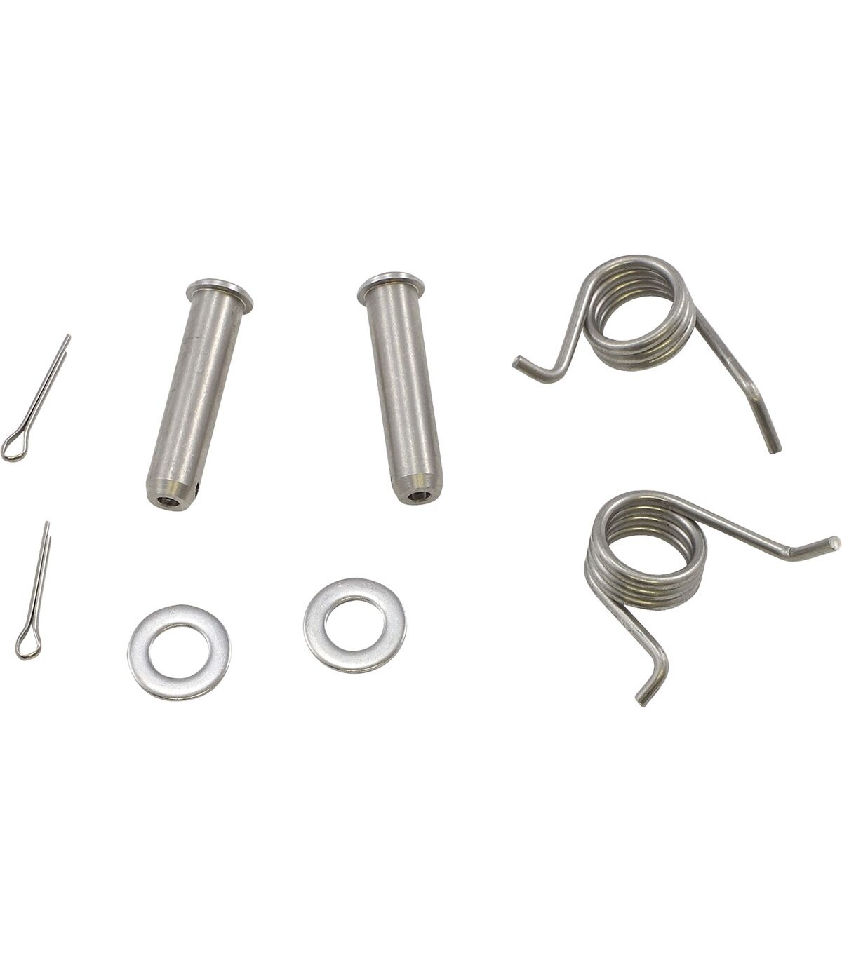 Footpeg Pin and SpringDesigned to replace OEM stock footpeg pin and springWill work with most aftermarket footpegsIncludes two OEM replacement springs, two OEM replacement pins, two washers, and two cotter keys