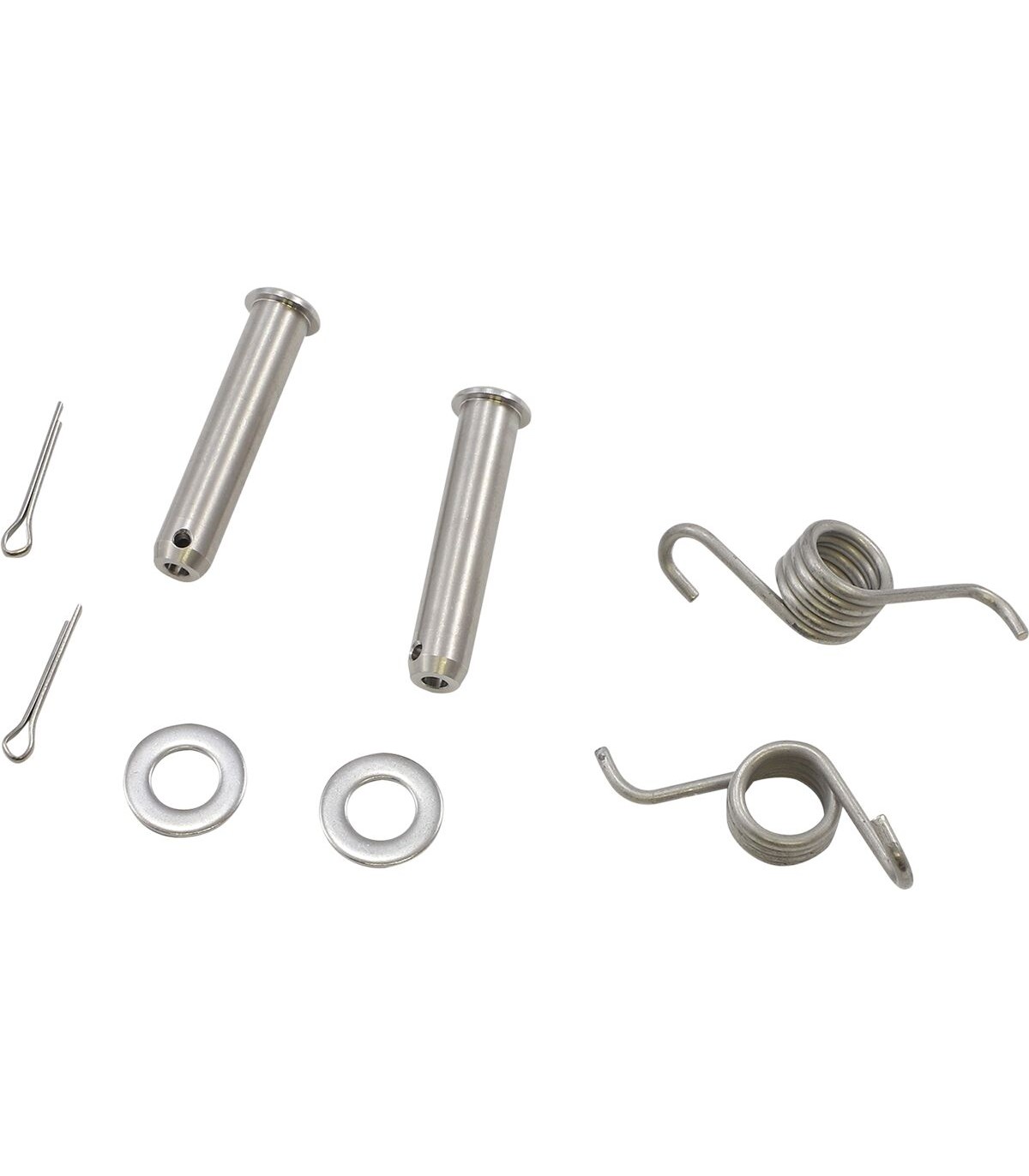 Footpeg Pin and SpringDesigned to replace OEM stock footpeg pin and springWill work with most aftermarket footpegsIncludes two OEM replacement springs, two OEM replacement pins, two washers, and two cotter keys