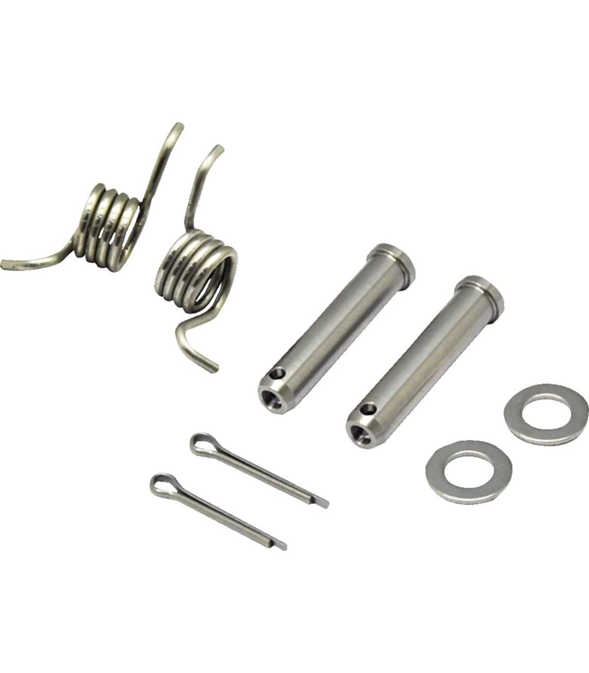 Footpeg Pin and SpringDesigned to replace OEM stock footpeg pin and springWill work with most aftermarket footpegsIncludes two OEM replacement springs, two OEM replacement pins, two washers, and two cotter keys