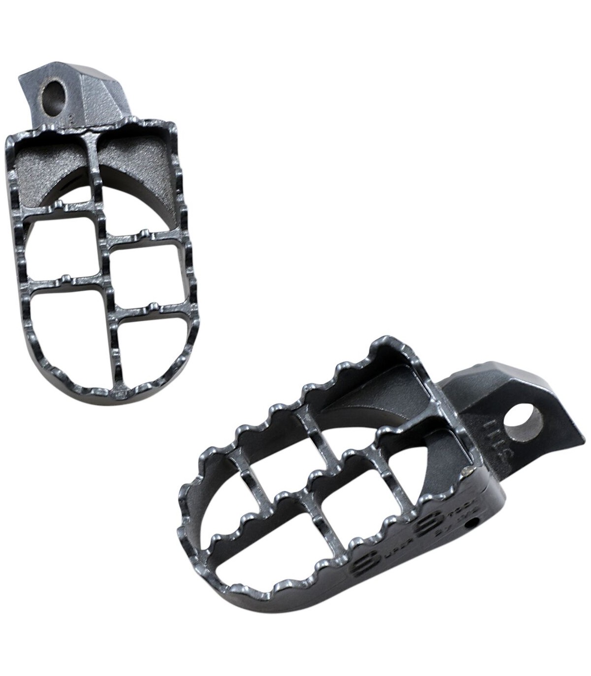 Super-Stock FootpegsWider than stock for sure-footed comfortCast from stainless steel - not weldedSerrated for positive footing, but points are rounded for safety