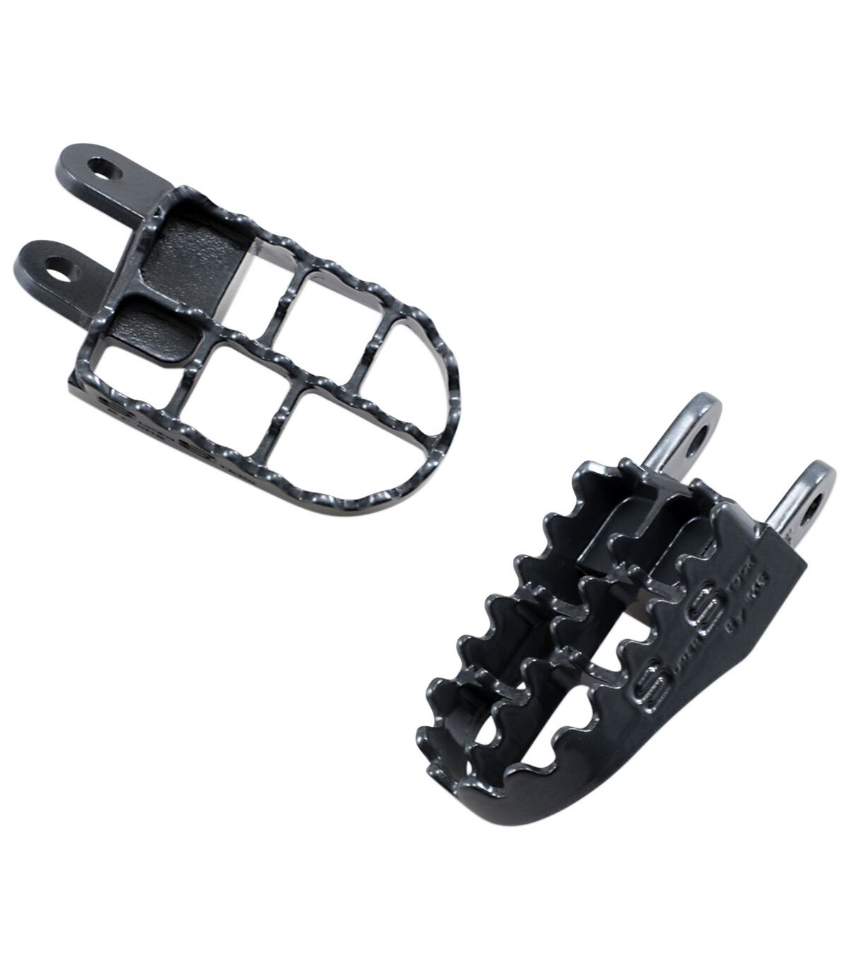 Super-Stock FootpegsWider than stock for sure-footed comfortCast from stainless steel - not weldedSerrated for positive footing, but points are rounded for safety