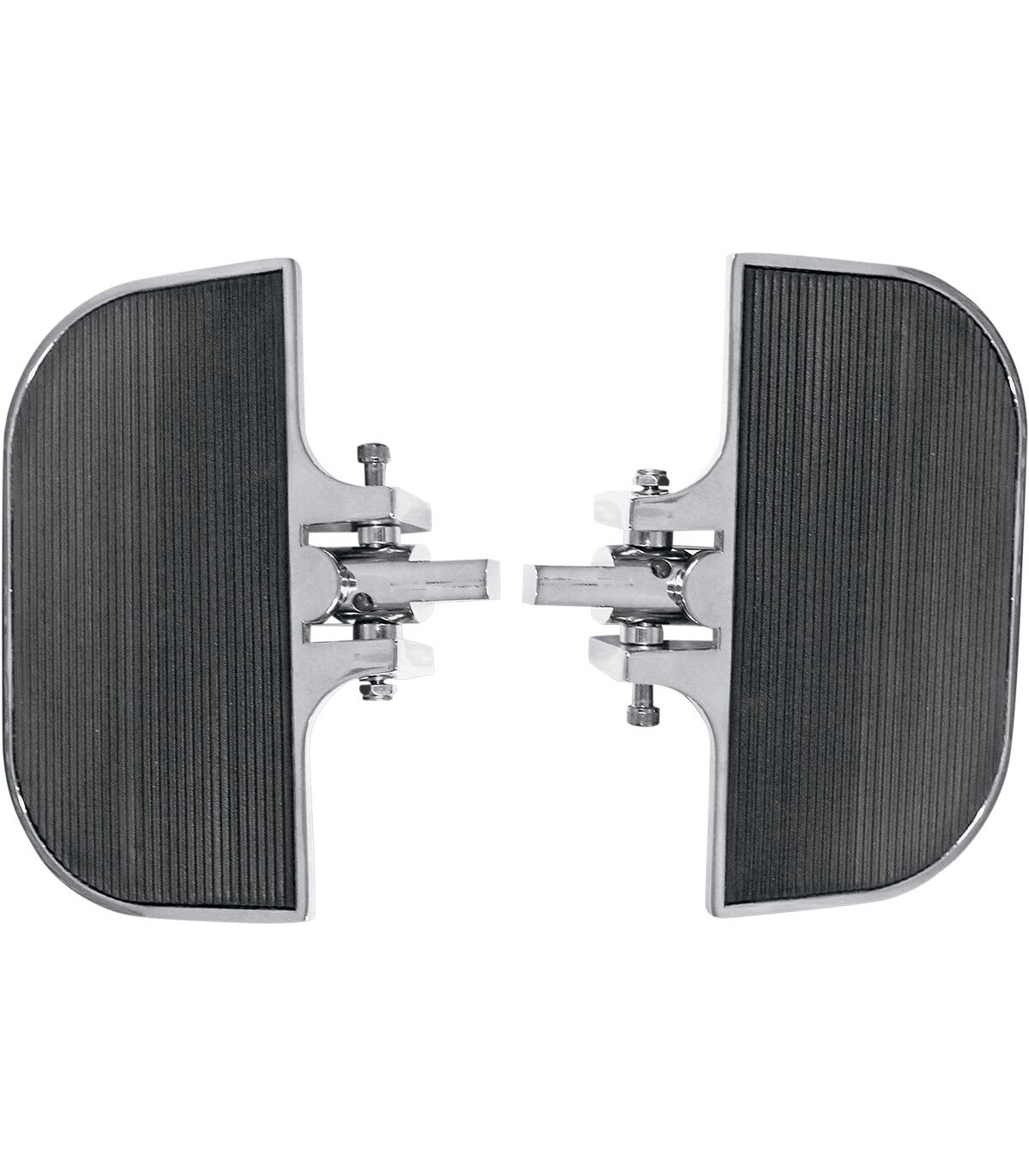 Petites platines repose-piedsFacile à monter en utilisant la chape mâle utilisée également pour les repose-pieds d'origineConstruction en métal coulé et chromé pour un design durable et élégantLe revêtement en caoutchouc antidérapant offre une surface antidérapante et confortableLes platines repose-pieds peuvent être tournées de jusqu'à 15 degrés pour une position de pilotage parfaite