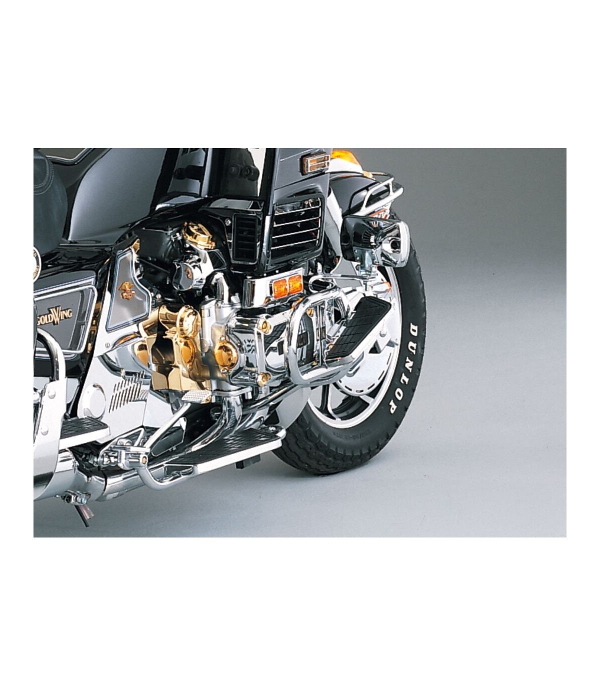 Repose-pieds de pare-cylindreDeux pattes de fixation facultatives compatibles avec toutes les GL 80-87 équipées de pare-carters d'origineChaque lot de pattes de fixation peut être ajusté en fonction de la taille du piloteLa conception rabattable simple avec blocage anti-vibration permet de maintenir les platines vers le haut ou vers le basLes véritables inserts en caoutchouc EPDM sont compatibles avec le modèle Aspencade d'origine (contrairement à ceux en plastique dur utilisés par beaucoup d'autres modèles)Matériel de montage inclus