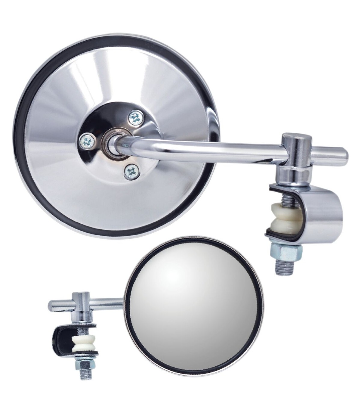 Rétroviseur universel à clampRétroviseur à clamp en acier inoxydable premiumLentille plate et ronde de 3-7/8”