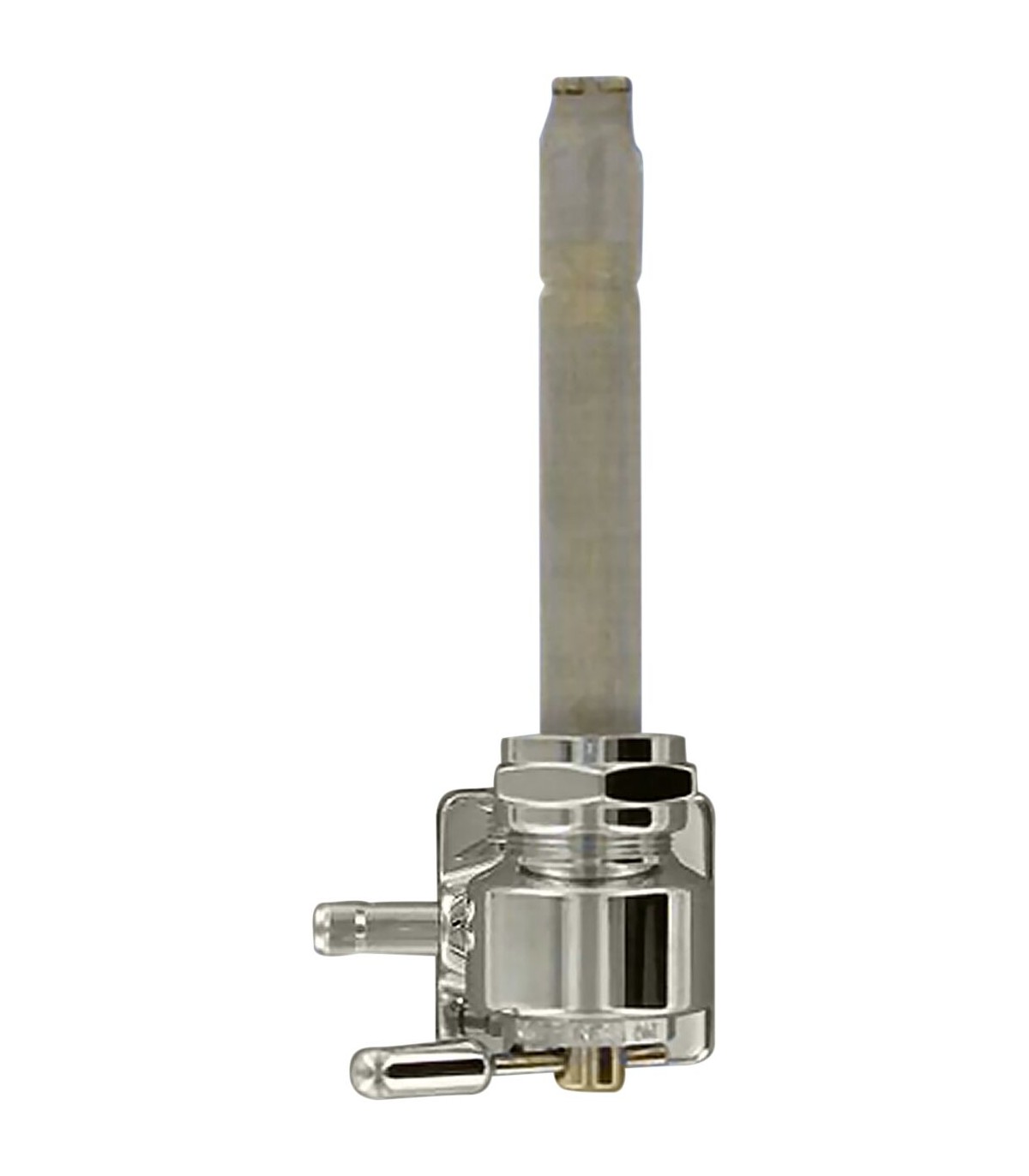 Robinet d’essence de mise à l’airMêmes caractéristiques que les robinets d'essence de mise à l'air d'origine : lorsque la valve est laissée sur « on » alors que le moteur est coupé, le flux de carburant s'arrête automatiquementFinition chromée lustrée de haute qualité, identique à celle de la gamme de valves d'essence Power-Flo de PingelLa sortie est un raccord simple de 5/16" ; compatible avec la durite d'origineDisponible pour les modèles 75-93 avec un filetage extérieur de 22 mm ; convient également pour les modèles 94-99 avec un filetage de 22 mm pour éliminer la coupure du vide. Compatible avec les réservoirs 66-74 à filetage intérieur NPT de 9,53 mm (0,375 pFabrication aux États-Unis.Toutes les descriptions sont faites à partir de la position assise sur la moto avec une référence de la position de sortie à la position on, réserve et off du levier de valve d'essence.Convient aussi pour les modèles 84-93 si la mise à l’air est perforée