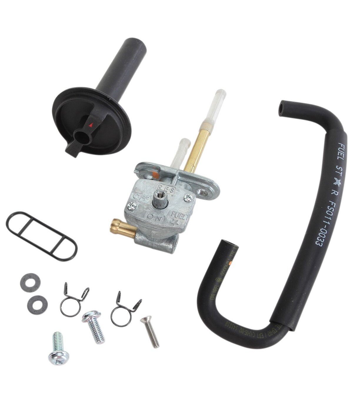 Kit de robinet d'essenceAvec valve de carburant, durite de carburant, colliers de serrage et vis le cas échéantSert de remplacement aux valves d’essence d’origineCette durite de carburant, qui remplace celle d’origine, offre une installation sans difficultésAvec colliers de serrage pour durite d'essence d'origineJoints Viton en caoutchouc, résistants au carburant