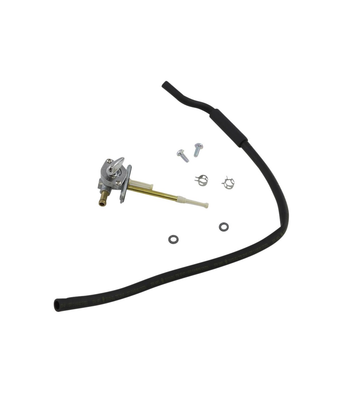 Kit de robinet d'essenceAvec valve de carburant, durite de carburant, colliers de serrage et vis le cas échéantSert de remplacement aux valves d’essence d’origineCette durite de carburant, qui remplace celle d’origine, offre une installation sans difficultésAvec colliers de serrage pour durite d'essence d'origineJoints Viton en caoutchouc, résistants au carburant