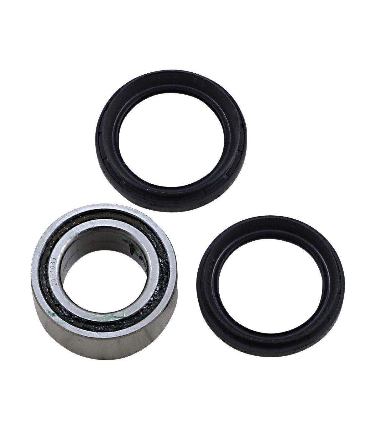 Kit de roulement de roueLes joints de roulement sont en caoutchouc à lèvre double offrant une meilleure exclusion de l'eau, de la poussière et du sable avec une meilleure rétention de la graisseLe ressort jarretière en acier garantit une pression constante sur la portée d'axe, prolongeant la durée de vie du jointLes joints spy de roue sont en élastomère nitrile TC, spécialement conçus pour empêcher l'eau, la poussière et le sable de pénétrerLes joints sont recouverts de caoutchouc à l'extérieur, créant un joint optimal au niveau du moyeuLe kit renferme l’ensemble des roulements et joints nécessaires pour remonter une roue.Roulements haute vitesse à faible friction de qualité EMQ