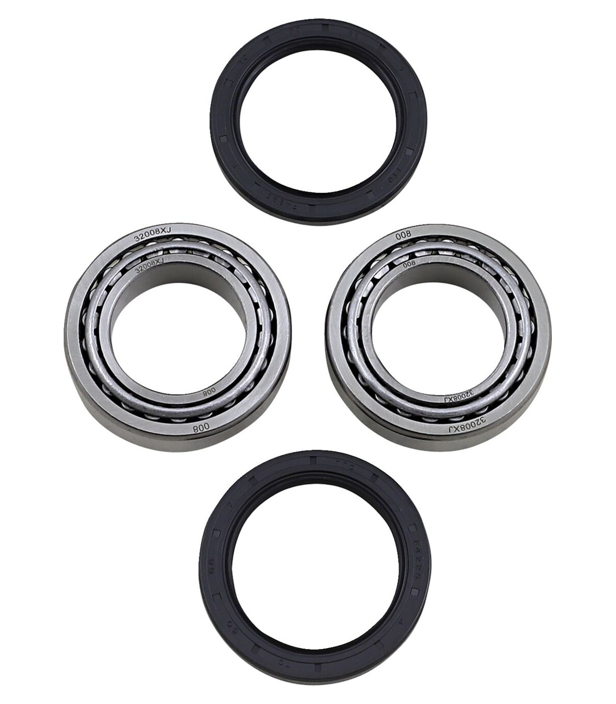 Kit de roulement de roueLes joints de roulement sont en caoutchouc à lèvre double offrant une meilleure exclusion de l'eau, de la poussière et du sable avec une meilleure rétention de la graisseLe ressort jarretière en acier garantit une pression constante sur la portée d'axe, prolongeant la durée de vie du jointLes joints spy de roue sont en élastomère nitrile TC, spécialement conçus pour empêcher l'eau, la poussière et le sable de pénétrerLes joints sont recouverts de caoutchouc à l'extérieur, créant un joint optimal au niveau du moyeuLe kit renferme l’ensemble des roulements et joints nécessaires pour remonter une roue.Roulements haute vitesse à faible friction de qualité EMQ