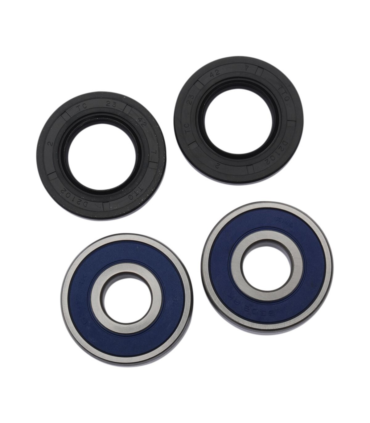 Kit de roulement de roueLes joints de roulement sont en caoutchouc à lèvre double offrant une meilleure exclusion de l'eau, de la poussière et du sable avec une meilleure rétention de la graisseLe ressort jarretière en acier garantit une pression constante sur la portée d'axe, prolongeant la durée de vie du jointLes joints spy de roue sont en élastomère nitrile TC, spécialement conçus pour empêcher l'eau, la poussière et le sable de pénétrerLes joints sont recouverts de caoutchouc à l'extérieur, créant un joint optimal au niveau du moyeuLe kit renferme l’ensemble des roulements et joints nécessaires pour remonter une roue.Roulements haute vitesse à faible friction de qualité EMQ
