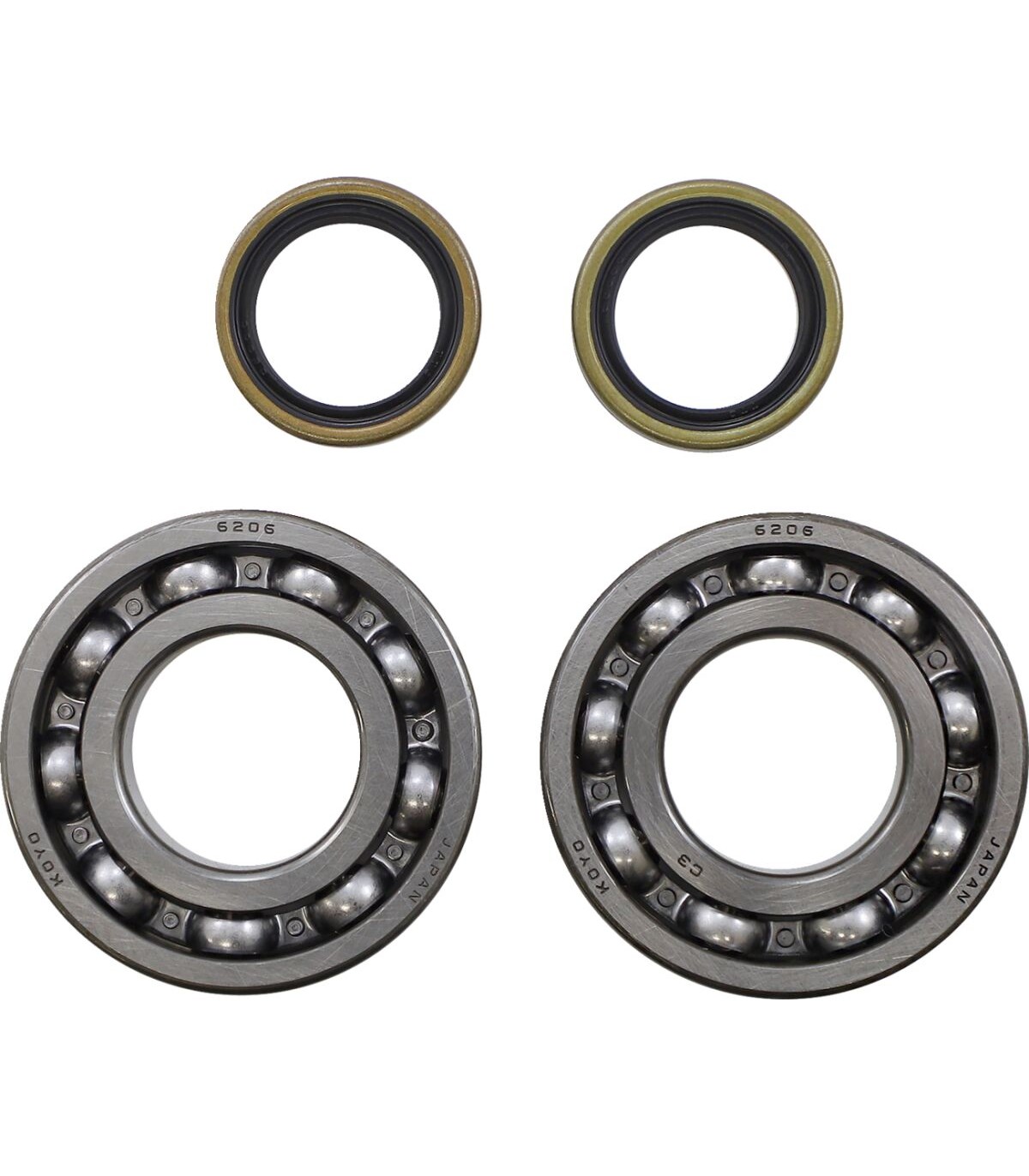 Kit de roulements de vilebrequin avec jointsLes kits renferment les roulements de vilebrequin gauche et droit ; les kits 2 temps comprennent les joints extérieurs.Les joints ont été dotés d'un rebord en fluorocarbure pour réduire la friction du démarrage à sec sur les moteurs 2 tempsLes kits de roulement de vilebrequin 4 temps sont vendus sans joints