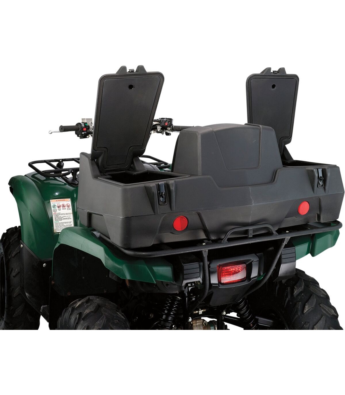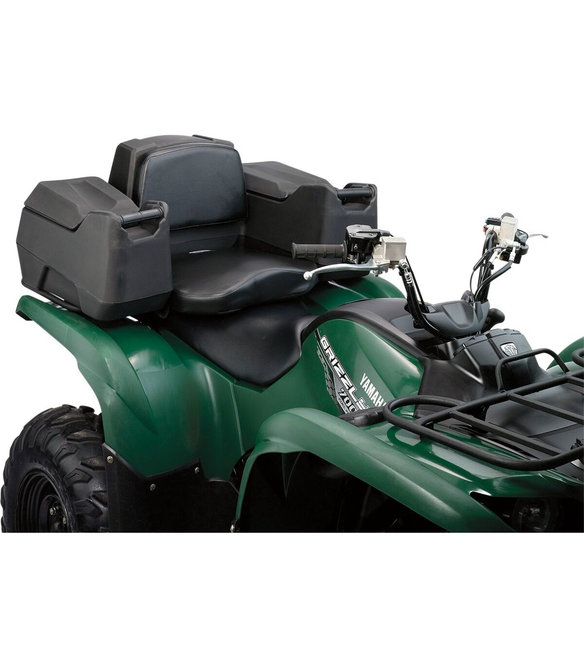 Top case arrière Diplomat IIEn polyéthylène ultra-résistant aux impacts et facile à nettoyerRésistant aux UVAccoudoirs et dosseret en cuir noir et rembourrage de 3" d'épaisseur.Loquets, réflecteurs et poignées en mousse inclusLa zone centrale offre plus d’espace pour se détendre à l’arrêt.Se fixe sur le porte-bagage arrière au moyen de vis en UCompatible avec la plupart des quadsDimensions totales : 41" L x 25" l x 16,5" HNe pas utiliser en tant que siège pendant la conduite.Peut être adapté à presque tous les types de quad.
