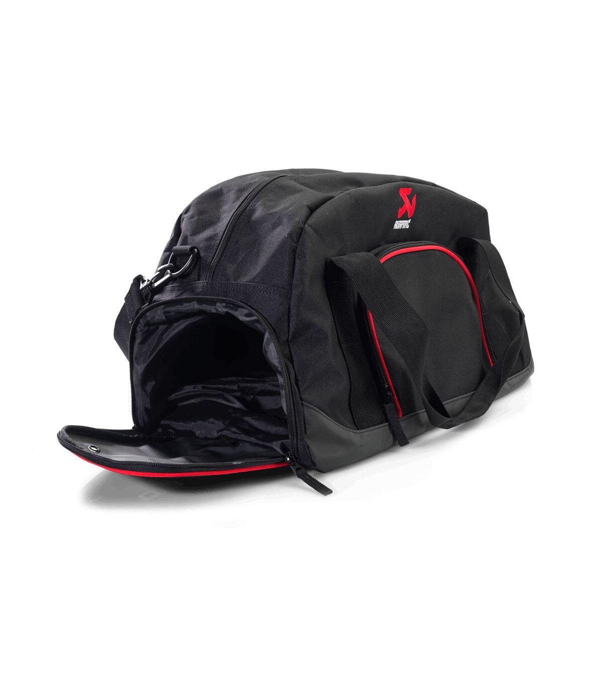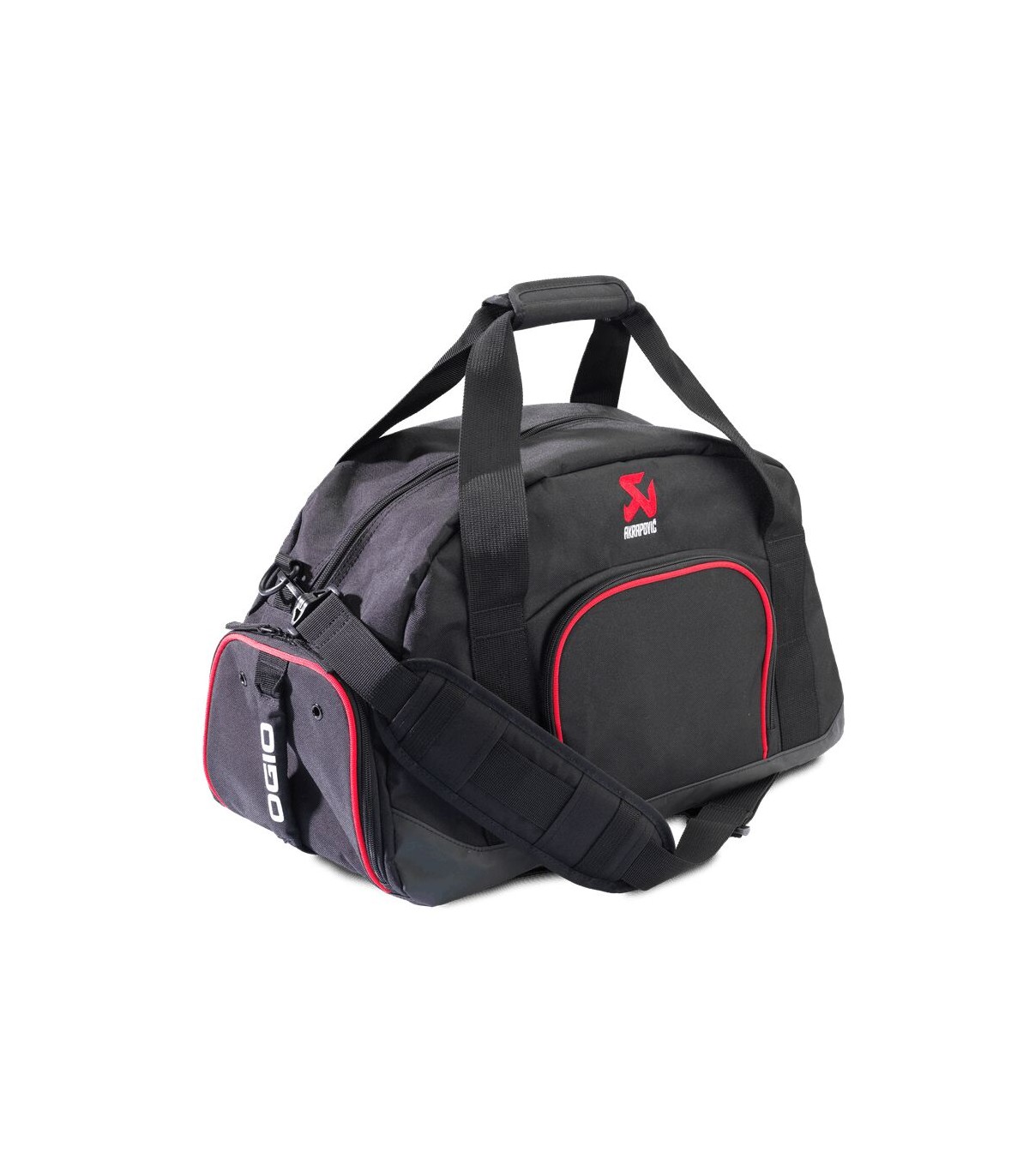 Duffle BagMade in collaboration with the renowned Ogio brand and constructed using durable and long-lasting materials.The dome shape can accommodate shoes in a specially ventilated compartmentFeatures a front zippered pocketPadded shoulder strapAll-metal hardware, and a fabric-wrapped handle.Styled in black with red detailing and a discreet Akrapovic logo.30 × 60 × 63 cm