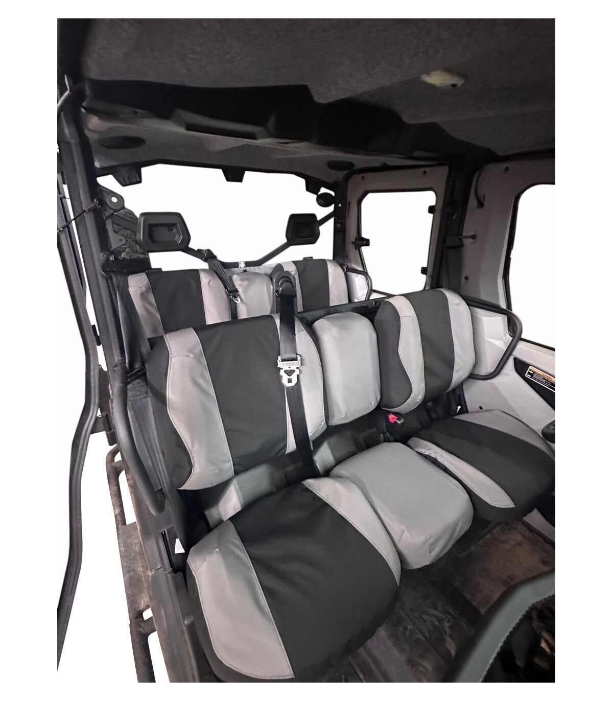 Seat CoverSeat covers are made from 600 denier urethane coated polyester and use elastic around outer edge to attach under seat bottom and seat backDurable water resistant coating on backsideUV resistance and heavyweight material make this a durable seat cover for daily useNeoprene side panels and heavy Velcro straps on back and sides of seat covers lock covers in place so they stay in position no matter how rough the trail getsGreat protection for factory seats with easy installation and no tools needed for a tight factory fitComes with all neccessary mounting items and instructionsCovers front or rear row of seatsMade in USA