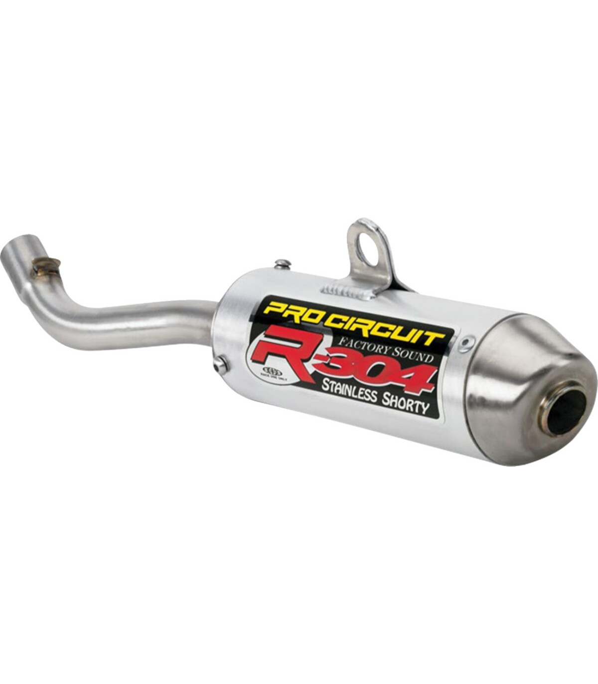 R-304 SilencerFull-race two-stroke silencerThe compact design of the short aluminum canister offers optimum performance gains and is recommended for closed-course racing onlyHex head screws are used to secure the inlet cap and can be removed easily for quick re-packing of the silencer304 stainless steel intake tubeDouble-walled mounting bracket(s)Tig and mig welded for strength and durabilityE-Glass internal packing for maximum packing lifeMade in the USA