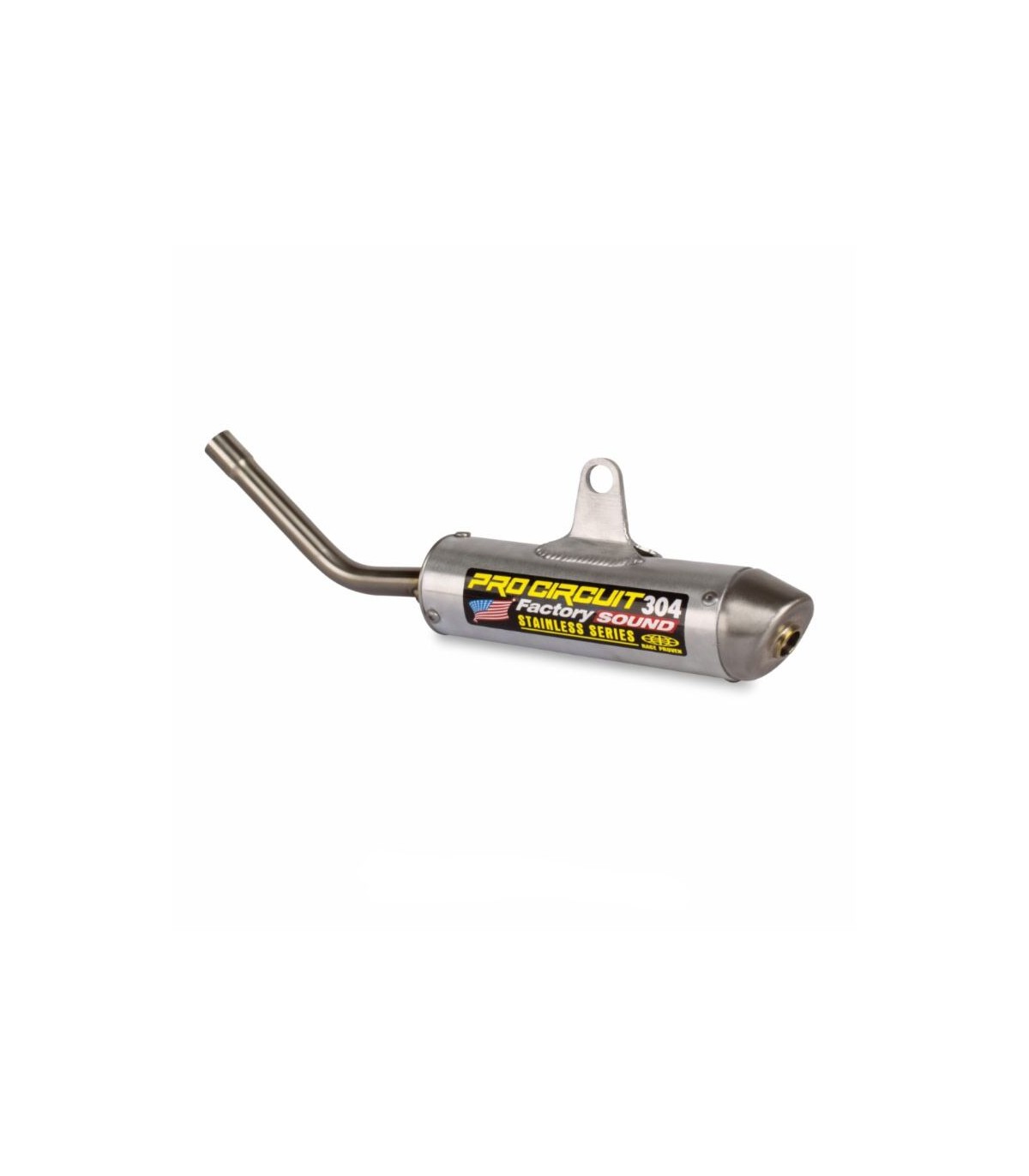 304 Factory Sound SilencerThe 304 silencer is recommended for most two-stroke applications.Feature a longer midsection than the R-304 for stronger mid to high RPM performance Excellent replacement for the OEM silencer while offering impressive performance gains 6061 T-6 brushed aluminum housing, stainless steel tubing and end cap Double-walled mounting brackets FIM-approved 304 stainless steel end cap Steel Allen-head screws for easy re-building/ repacking Exclusive E-glass pillow packing