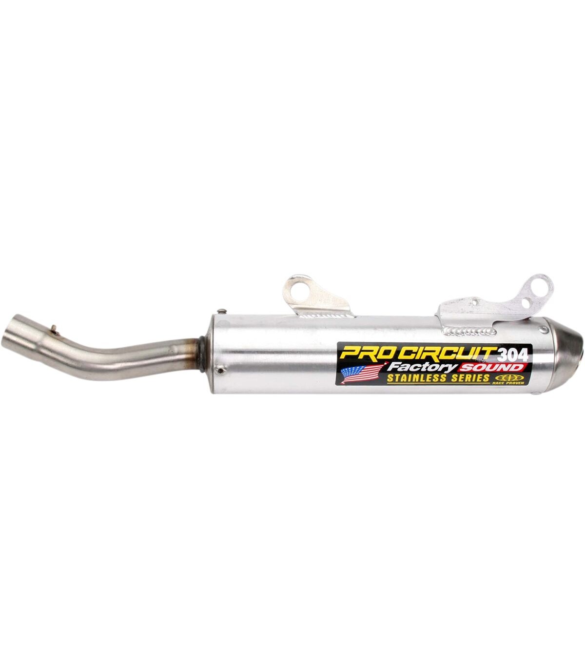 304 SilencerThe slightly longer body offers added top end performance while reducing noise outputLonger body design helps to reduce noise output6061 T6 brushed aluminum silencer bodyStainless steel inlet tube and end-capTig and mig welded for strength and durabilityDouble-walled mounting bracket(s)Allen head screws ensure easy repacking when needed for extended product lifeMade in the USA