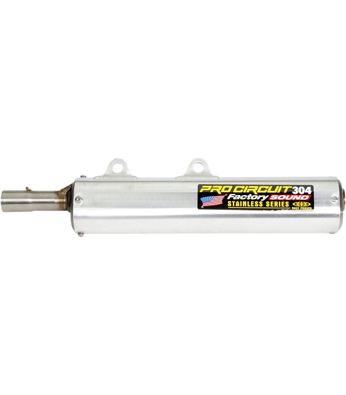 304 SilencerThe slightly longer body offers added top end performance while reducing noise outputLonger body design helps to reduce noise output6061 T6 brushed aluminum silencer bodyStainless steel inlet tube and end-capTig and mig welded for strength and durabilityDouble-walled mounting bracket(s)Allen head screws ensure easy repacking when needed for extended product lifeMade in the USA