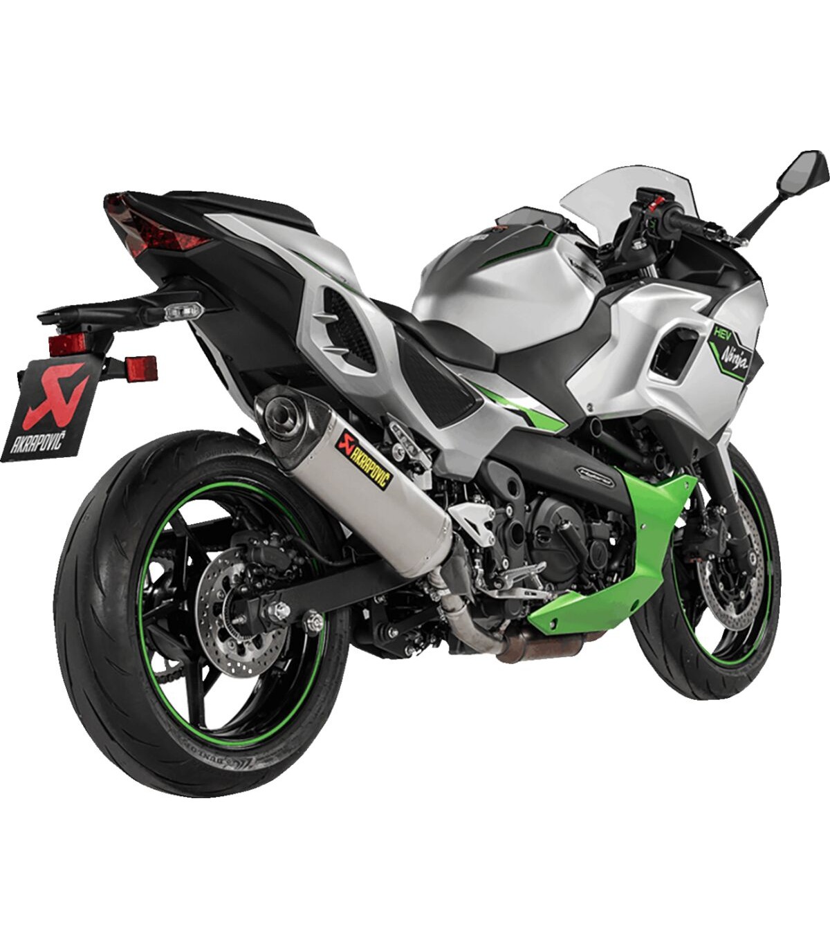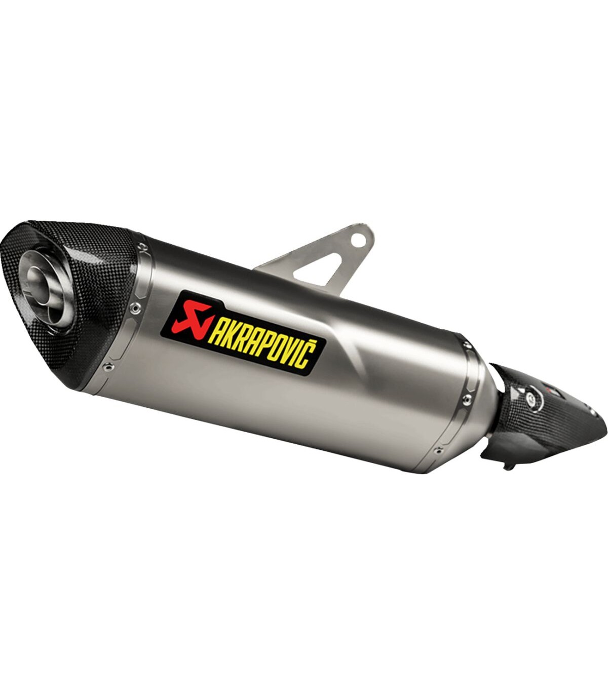 Slip-On Line MufflerWith an emphasis on aesthetics, sound, and weight reduction this titanium muffler has an imprinted surface to add strength and durabilityOffers a deep sound and a weight saving of 42.2% (1.8 kg) over the standard stock systemA carbon-fiber end cap and heat shield complete the look, with a stainless-steel link pipe and the inner structure of the muffler completing the systemFocused on throttle response, the performance has been boosted by an increase in power of 0.8 kW (1.1 hp) at 7,900 rpm and a torque rise of 1.0 Nm at 8,000 rpm when compared with a standard stock exhaust and tested on the Akrapovic dynoPlug-and-play installation means no remapping is required