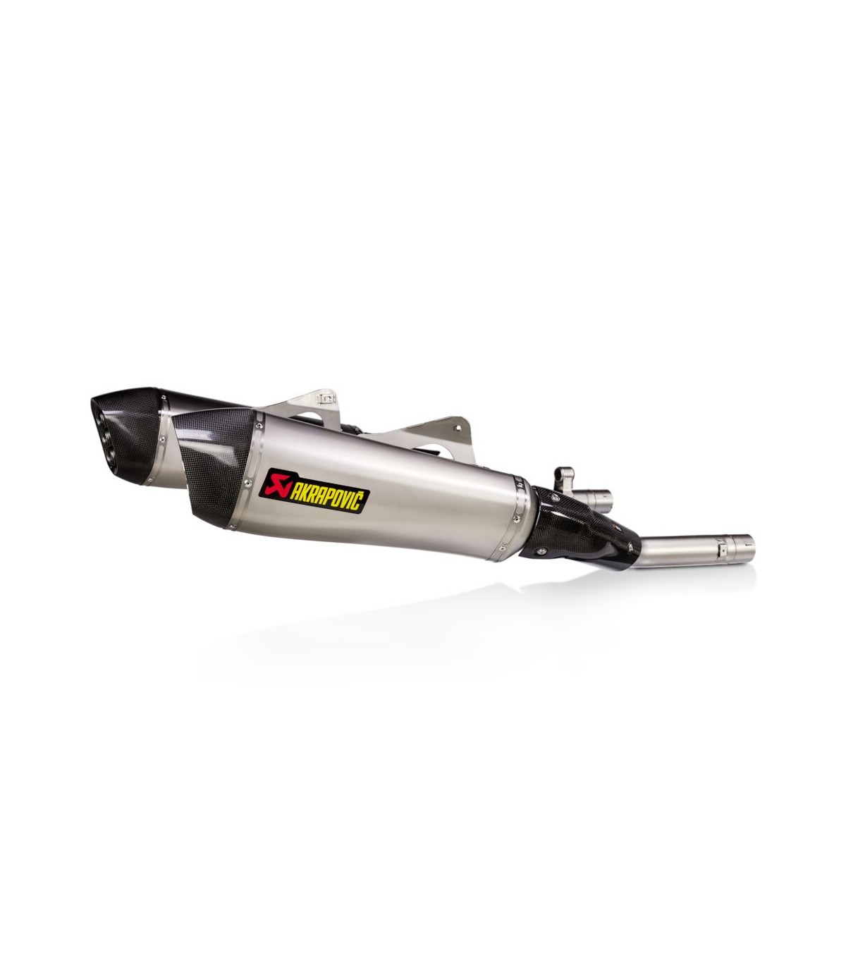 Slip-On Line MufflerSLIP-ON SERIES MUFFLERSSlip-on mufflers represent the first step in the exhaust system tuning processEasy to install and offers a great balance between price and performanceMore power, more torque, less weight and the unique Akrapovic soundMuffler sleeves constructed from stainless steel titanium or carbon fiberEnd caps constructed from titanium or carbon fiberOptional available stainless steel or titanium headers (sold separately) offer an upgrade to a full system when used with the Akrapovic slip-on mufflerOptional stainless steel or titanium link pipes (sold separately) can be combined with Akrapovic slip-on mufflersOptional carbon fiber muffler brackets and heat shields are available separately for some modelsPerformance-oriented catalytic converters that give you all the sound and performance upgrades you’re used to with Akrapovic exhaust systemsHoneycomb metal structure incorporates precious metals such as palladium, rhodium and platinum into its surfaceThese metals convert the poisonous carbon monoxide and unburned hydrocarbons found in exhaust gases into non-toxic carbon dioxide and water vaporSlip-On Line Dual Mufflers Titanium, Carbon End Cap