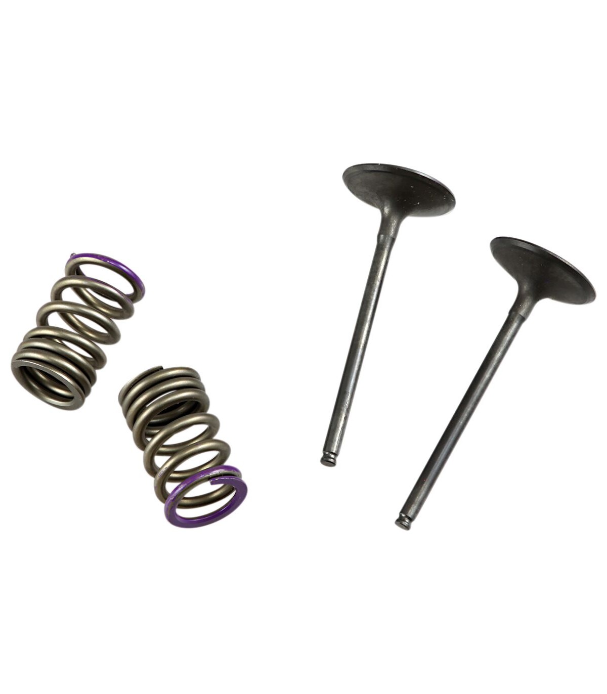 Kit de ressorts et de soupapesRemplace les soupapes et les ressorts de soupape d’origineSoupapes en acier nitruré pour une plus grande durabilité et moins d’usure dans des conditions extrêmesLes ressorts de soupape plus résistants supportent le poids supplémentaire des soupapes en acierLes ressorts sont fabriqués en acier chrome-vanadium premium pour une meilleure performance et durabilité à haut régimeLe kit contient un jeu de soupapes d’admission ou d’échappement en acier ainsi qu’un jeu de ressorts de soupape spécialement conçus ; il peut être installé à l’aide des coupelles, bases et joints de soupape d’origine