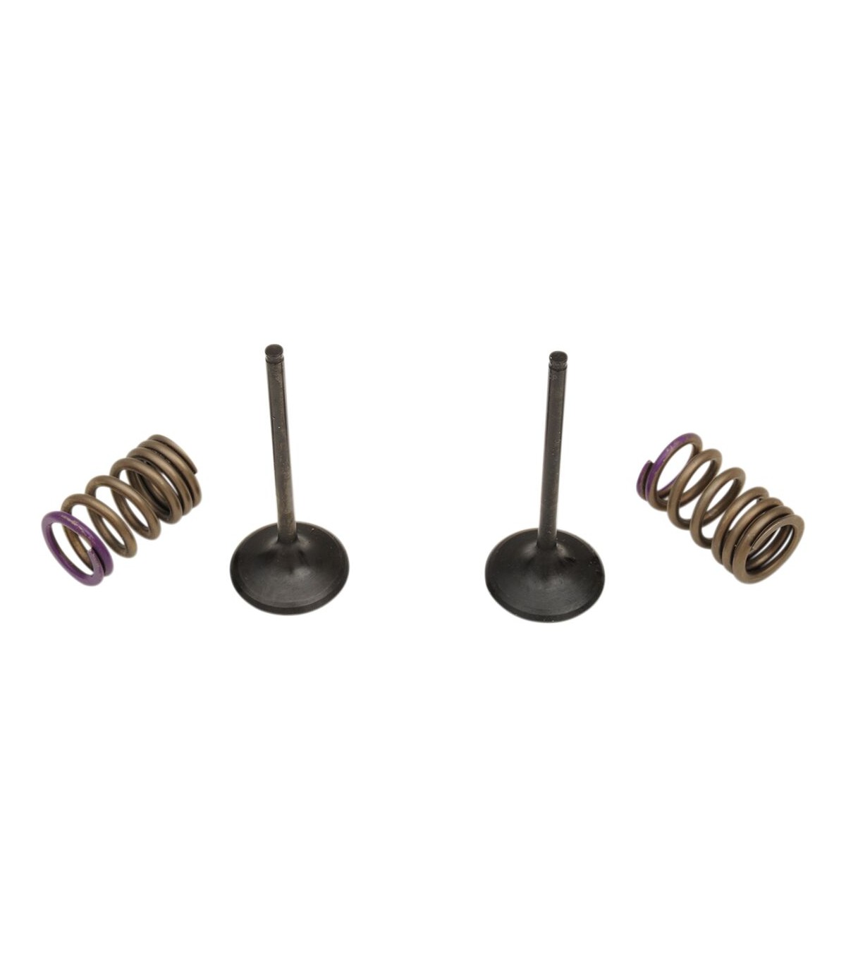Kit de ressorts et de soupapesRemplace les soupapes et les ressorts de soupape d’origineSoupapes en acier nitruré pour une plus grande durabilité et moins d’usure dans des conditions extrêmesLes ressorts de soupape plus résistants supportent le poids supplémentaire des soupapes en acierLes ressorts sont fabriqués en acier chrome-vanadium premium pour une meilleure performance et durabilité à haut régimeLe kit contient un jeu de soupapes d’admission ou d’échappement en acier ainsi qu’un jeu de ressorts de soupape spécialement conçus ; il peut être installé à l’aide des coupelles, bases et joints de soupape d’origine