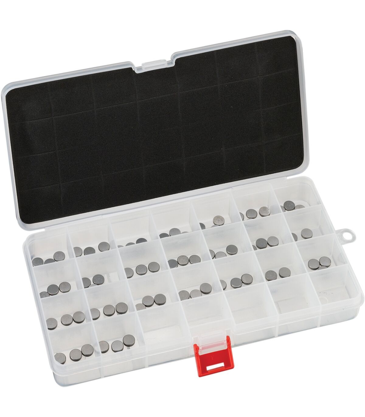 Kit de pastille de soupapeKits de pastilles de soupape complets pour une entretien plus facile de votre distributionForgées à partir d'acier roulé à froid 4140 non frittéTaille gravée au laser sur chaque pastille pour l'identificationUn kit à mettre dans la caisse à outils de tout mécanicienLes recharges sont vendues par packs de cinq aux revendeurs, à l'unité pour les clients