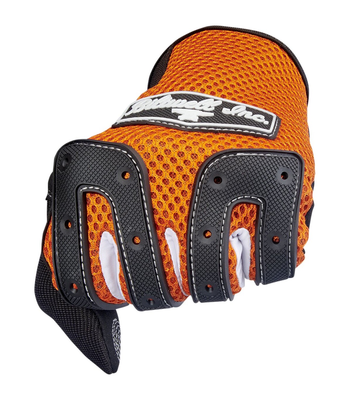 Anza GlovesSynthetic suede palm features two-way stretch for a snug, comfortable fitThree-ply, one-piece vented polyester back and thumb construction for maximum airflowFlexible thermoplastic rubber knuckle guards and shield logoLycra® expansion panels in finger joints for dexterityRugged Single- and double-needle polyester stitchingThermoplastic rubber knuckle guards on the back of the glove provide protection from rocky roost and airborne road debrisA double-stitched reinforcement panel on the thumb and index finger adds strength to the friction zone between your hands and the gripsConductive stitching in fingers and thumb lets you operate smart screens