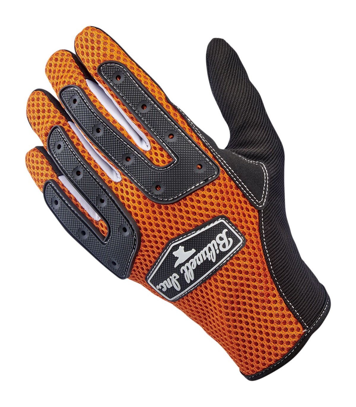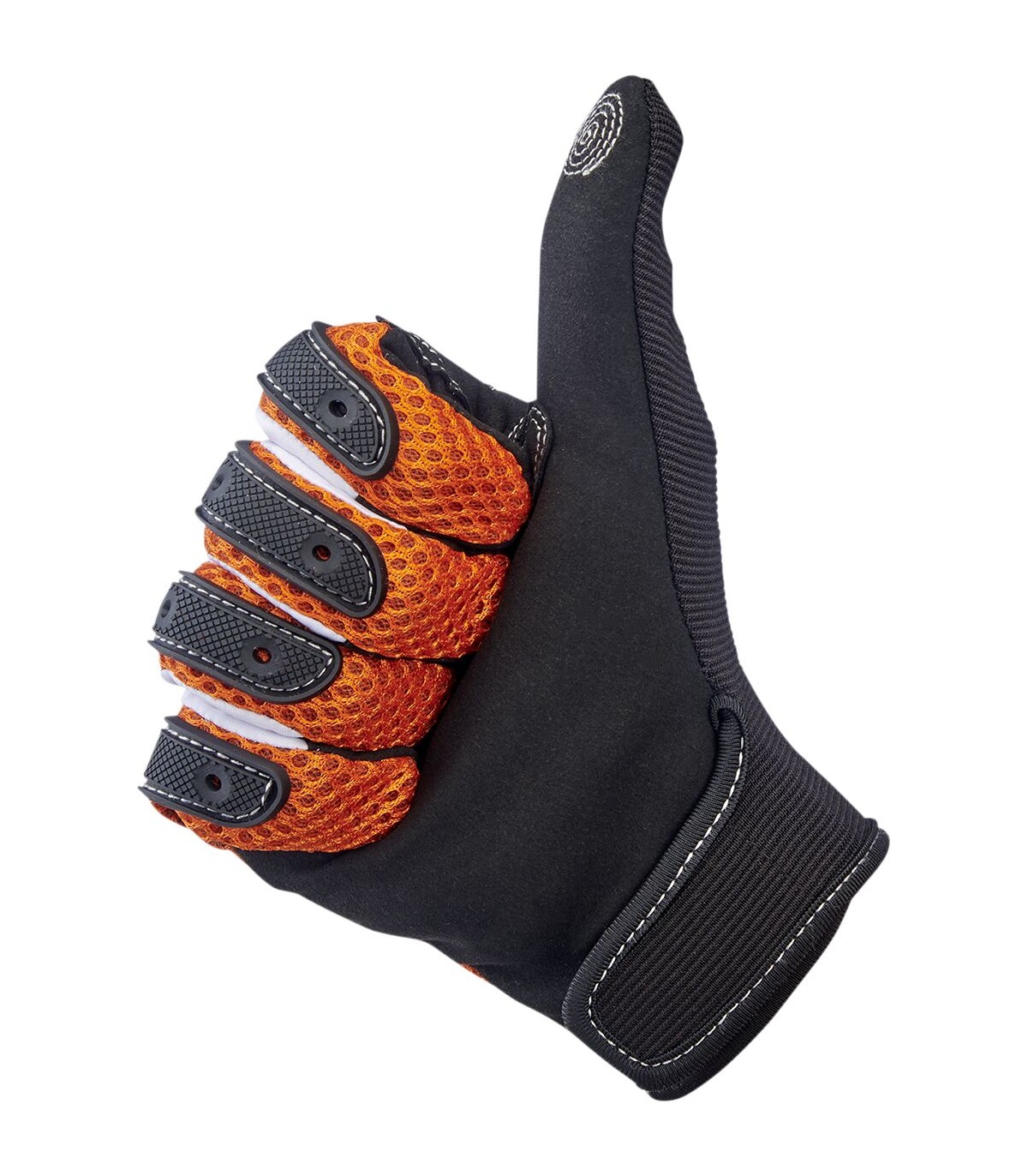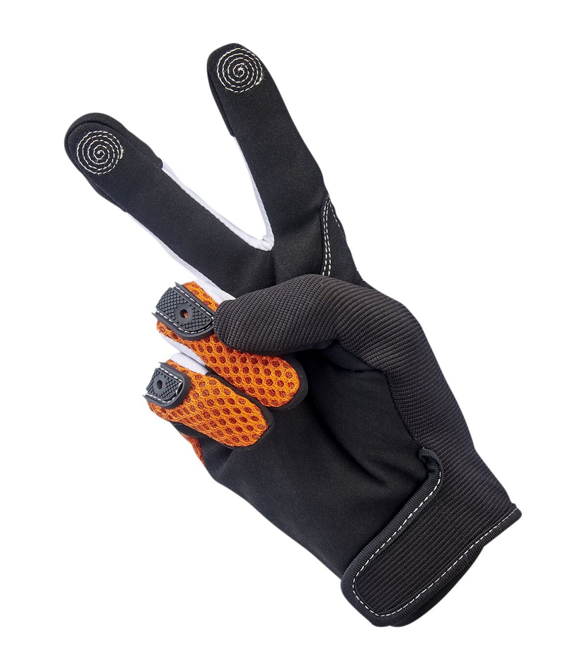 Anza GlovesSynthetic suede palm features two-way stretch for a snug, comfortable fitThree-ply, one-piece vented polyester back and thumb construction for maximum airflowFlexible thermoplastic rubber knuckle guards and shield logoLycra® expansion panels in finger joints for dexterityRugged Single- and double-needle polyester stitchingThermoplastic rubber knuckle guards on the back of the glove provide protection from rocky roost and airborne road debrisA double-stitched reinforcement panel on the thumb and index finger adds strength to the friction zone between your hands and the gripsConductive stitching in fingers and thumb lets you operate smart screens
